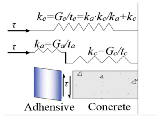The effective bond stiffness ke, as defined by Equation (22), is derived from the shear stiffness ka of the adhesive: