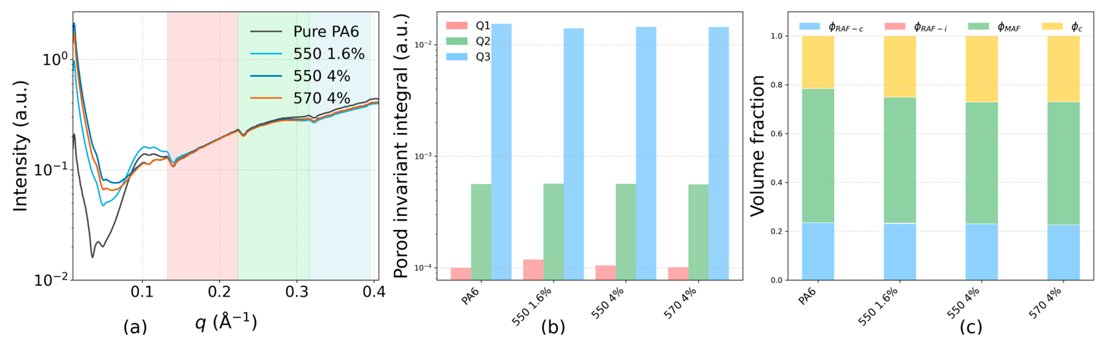 - Li, C.; Xia, Z.; Wu, L.; Xiong, Y.; Chen, W. Strain-Dependent Evolution of the Rigid Amorphous Fraction of Low-Density Polyethylene under Deformation. Macromolecules 2025, 58, 2320–2335. [Google Scholar] [CrossRef]