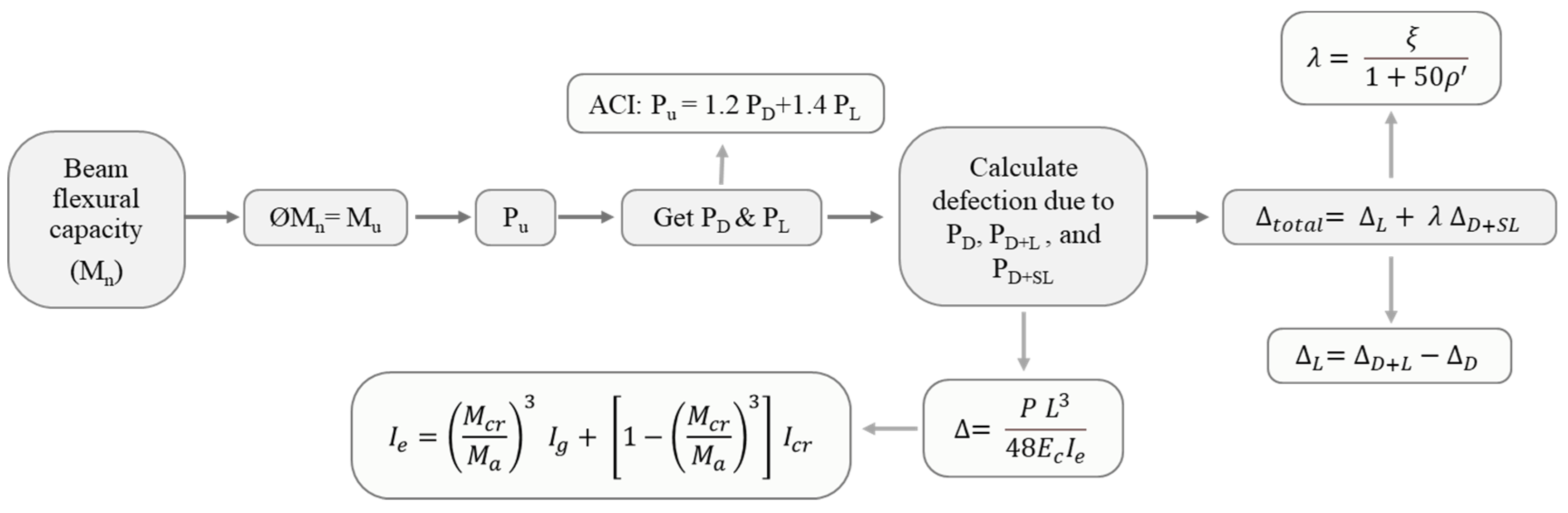 Deflection calculations in this study followed the approach recommended by the ACI [45,52].