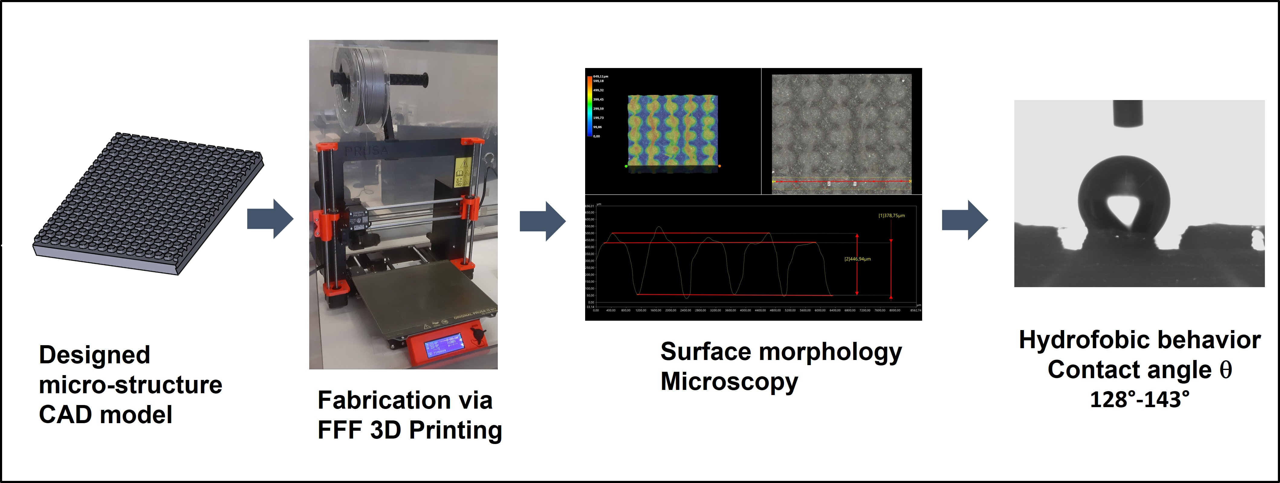 - Borriello, C.; Galvagno, S.; Tammaro, L.; Portofino, S.; Loffredo, F.; De Girolamo Del Mauro, A.; Villani, F.; Pandolfi, G.; Iovane, P.; Tassini, P. Fabrication of 3D Micropatterned Hydrophobic Surfaces by Fused Filament Fabrication Printing Technology. Appl. Res. 2024, 3, e202400003. [Google Scholar] [CrossRef]