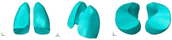 Subsequently, the model was transferred to the “Assembly” module to assign the proper boundary conditions for the analyses. The purpose of the numerical simulations was to evaluate the expansion, in terms of displacements, of the lungs during the air inhalation phase. A dynamic explicit analysis type was preferred, which allowed for the inclusion of the time variable.