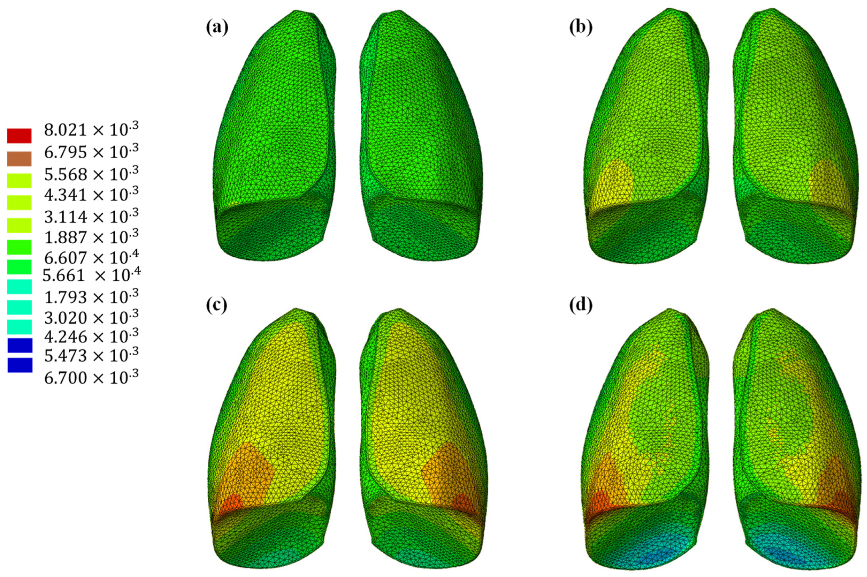 Figure 4, which considered a uniformly distributed surface depression, mimicking breathing. Material properties of the Flexible 80A resin, in
