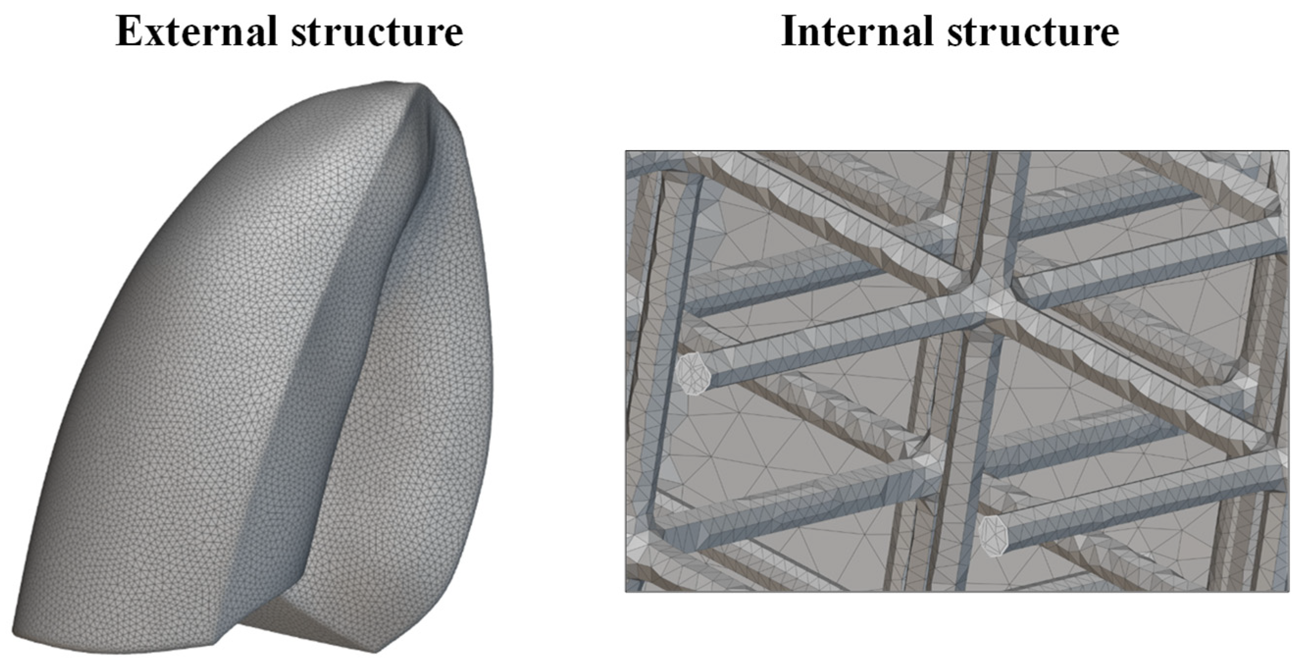 Figure 10. The two geometries were merged into a single STL mesh, creating a hybrid structure that allowed a direct visual comparison between the real anatomical morphology and the engineered lattice-based design. As illustrated in