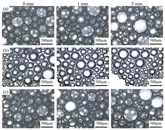 - Besson, S.; Debrégeas, G.; Cohen-Addad, S.; Höhler, R. Dissipation in a Sheared Foam: From Bubble Adhesion to Foam Rheology. Phys. Rev. Lett. 2008, 101, 214504. [Google Scholar] [CrossRef] [PubMed]