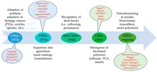 2.1. A Historical Perspective: Synthetic Polymers in Heritage Conservation and Agriculture