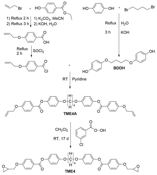 2.2. Synthesis of Epoxy Monomers LCE-DP and TME4