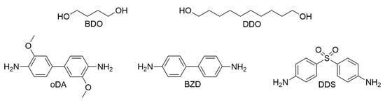 2.3.1. DGEBA and TMBP Cured with BDO, DDO and DDS