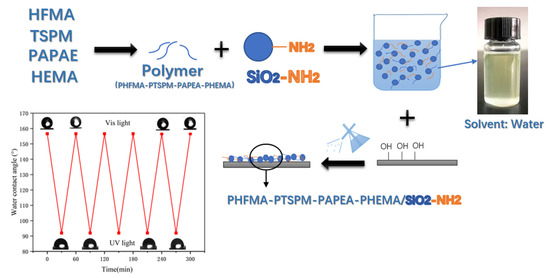 - Li, W.; Ni, X.; Zhang, X.; Lei, Y.; Guo, J.; Jin, J.; You, B. UV−NIR dual-responsive nanocomposite coatings with healable, superhydrophobic, and contaminant-resistant properties. ACS Appl. Mater. Interfaces 2020, 12, 48101–48108. [Google Scholar] [CrossRef] [PubMed]