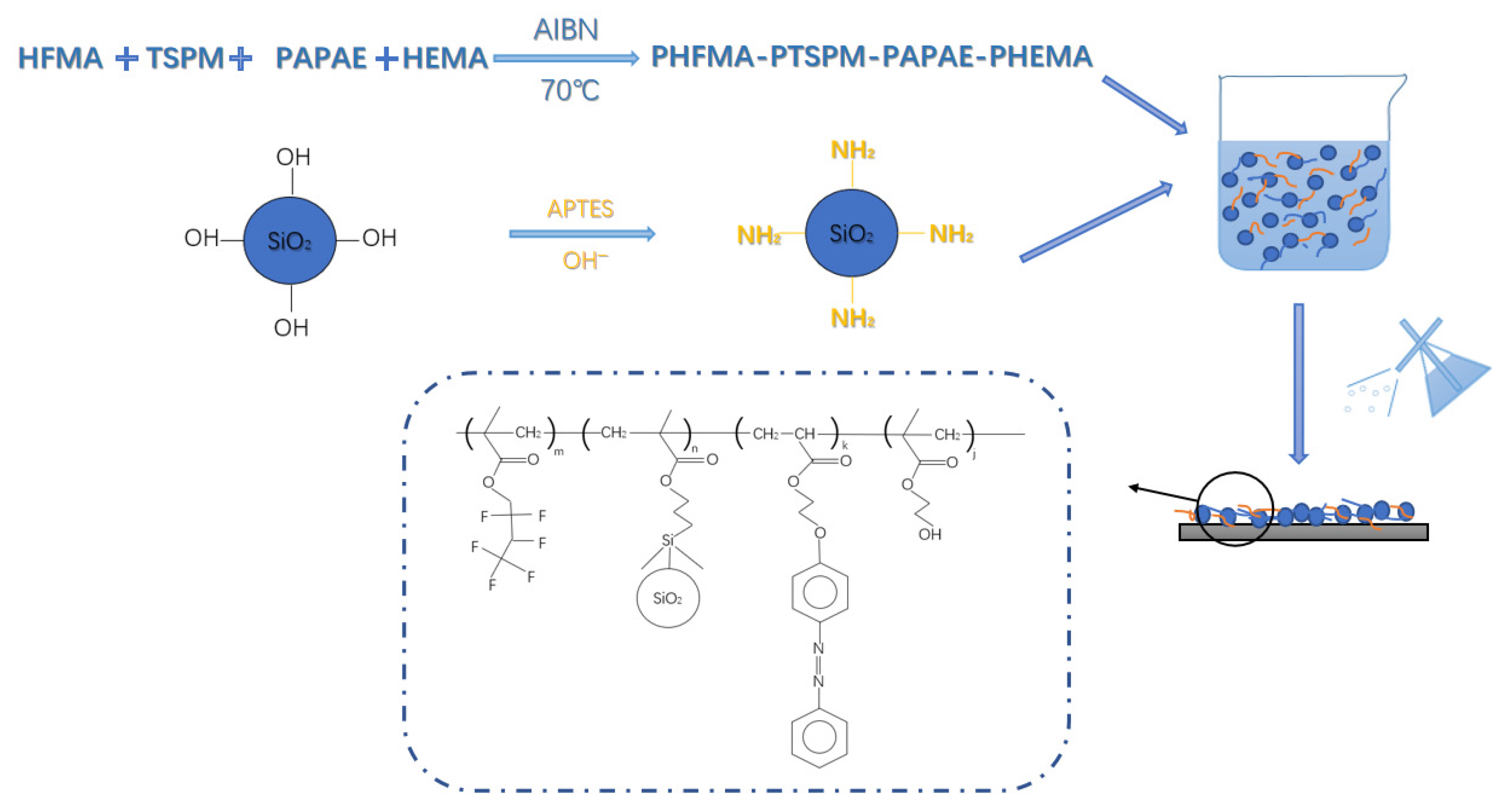 - Du, Q.; Zhang, C.; Sun, S.; Wang, Y.; Liu, H.; Wei, Y.; Jiang, Y. Magnetically superamphiphobic nanoparticles for magnetic response surface preparation. Langmuir 2020, 36, 14318–14323. [Google Scholar] [CrossRef] [PubMed]