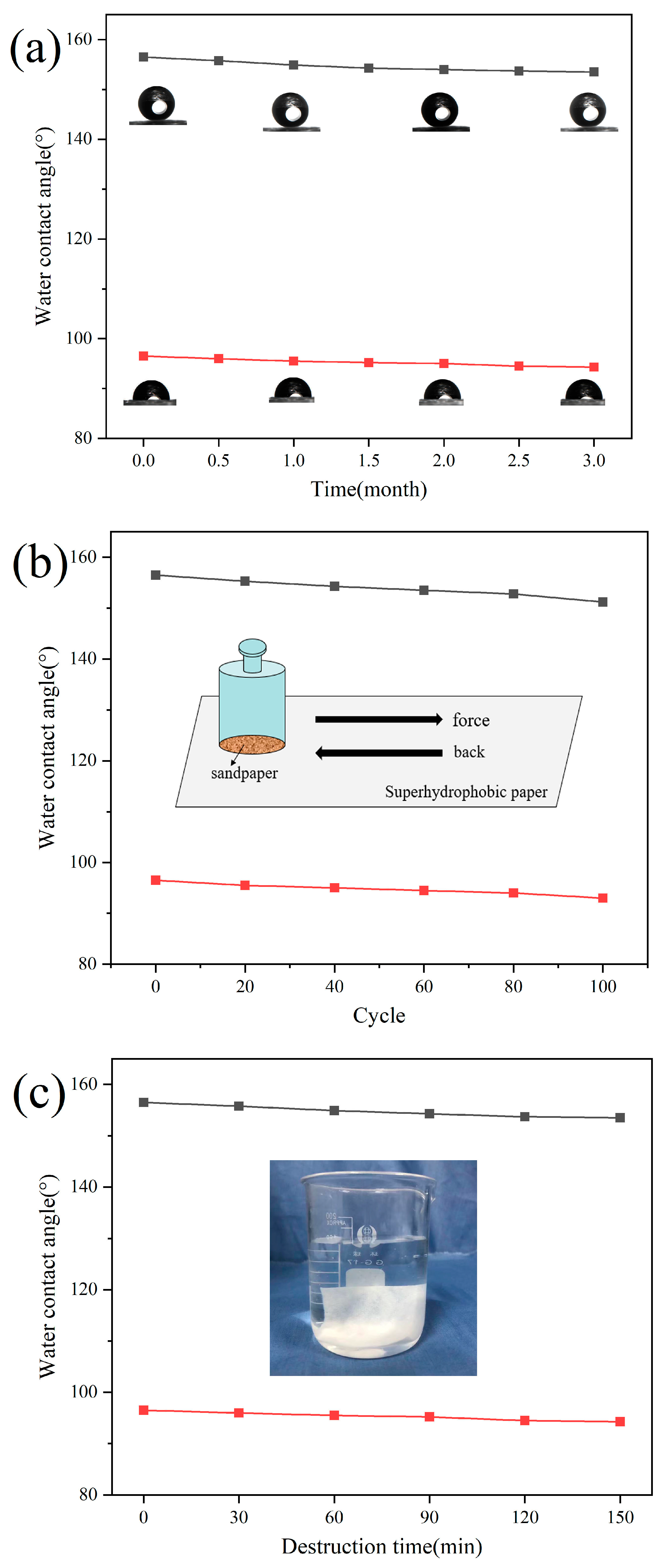 - Jiang, S.; Zhou, S.; Du, B.; Luo, R. A study on the stability of superhydrophobic paper reinforced by amino-assisted modified PHFMA-PTSPM polymer. Mater. Res. Express 2020, 7, 105301. [Google Scholar] [CrossRef]