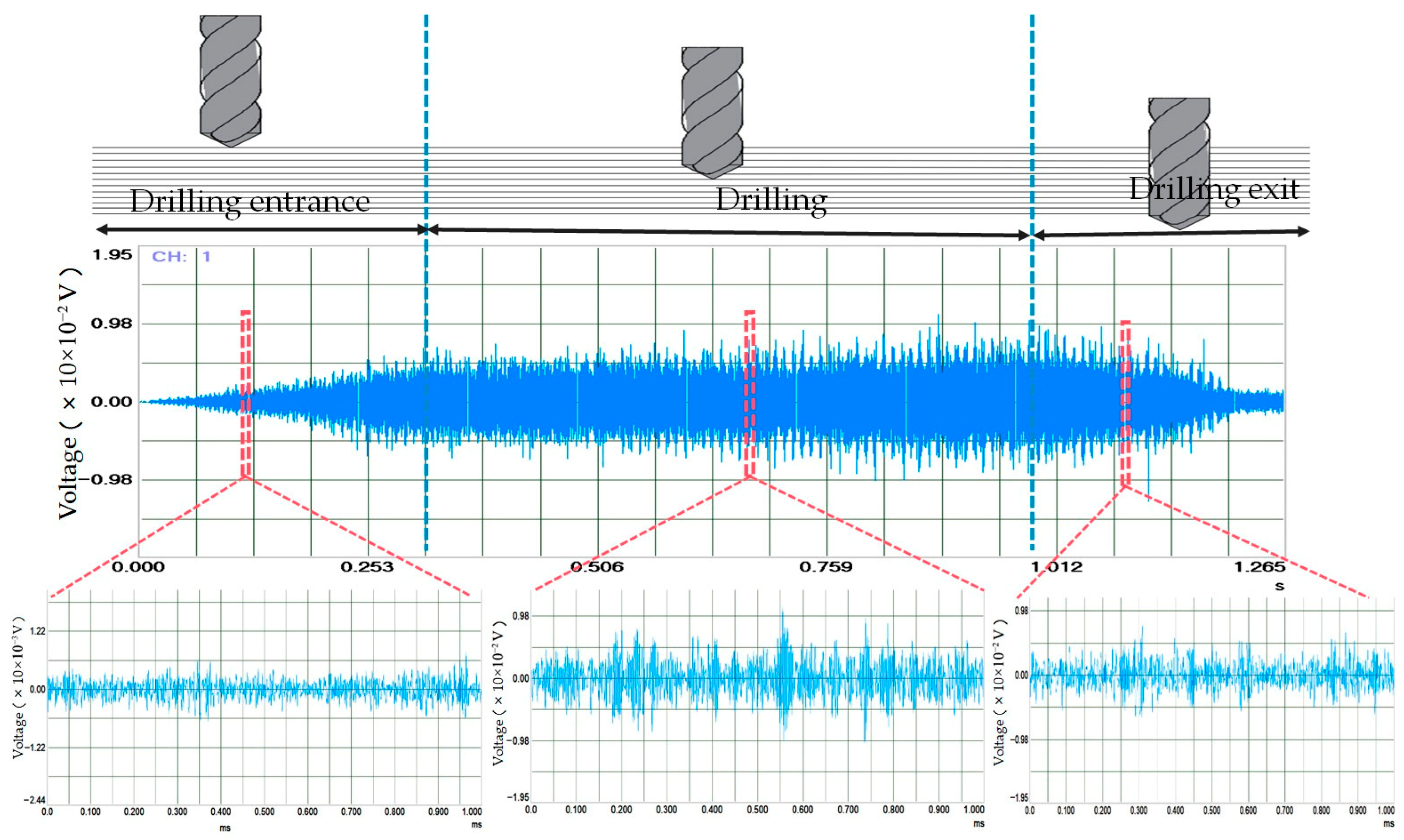3.1. Acoustic Emission Signal Analysis of CFRP Drilling