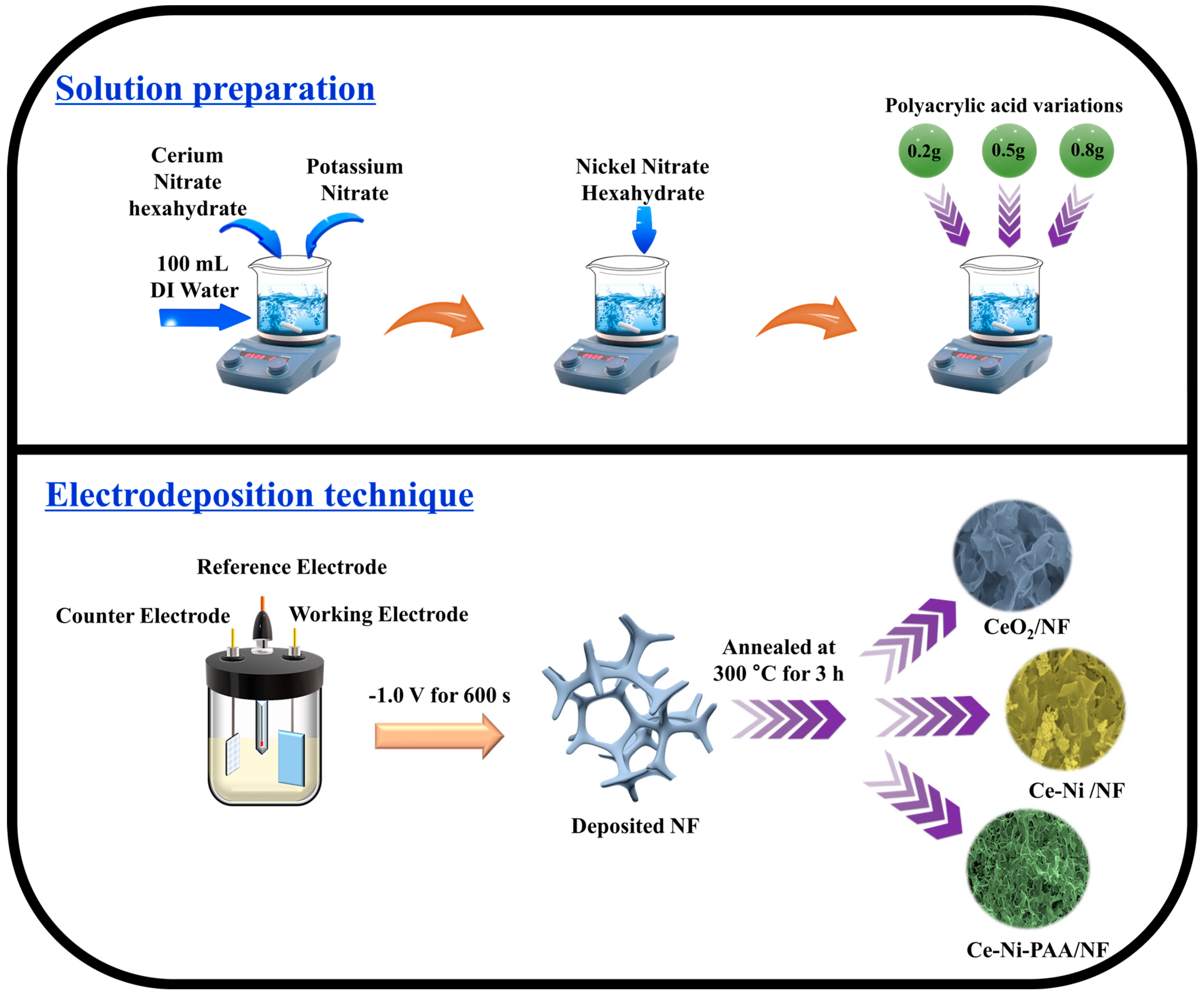 2.2. Synthesis of CeO2, CeO2-NiO, and CeO2-NiO-PAA Precursor Solution