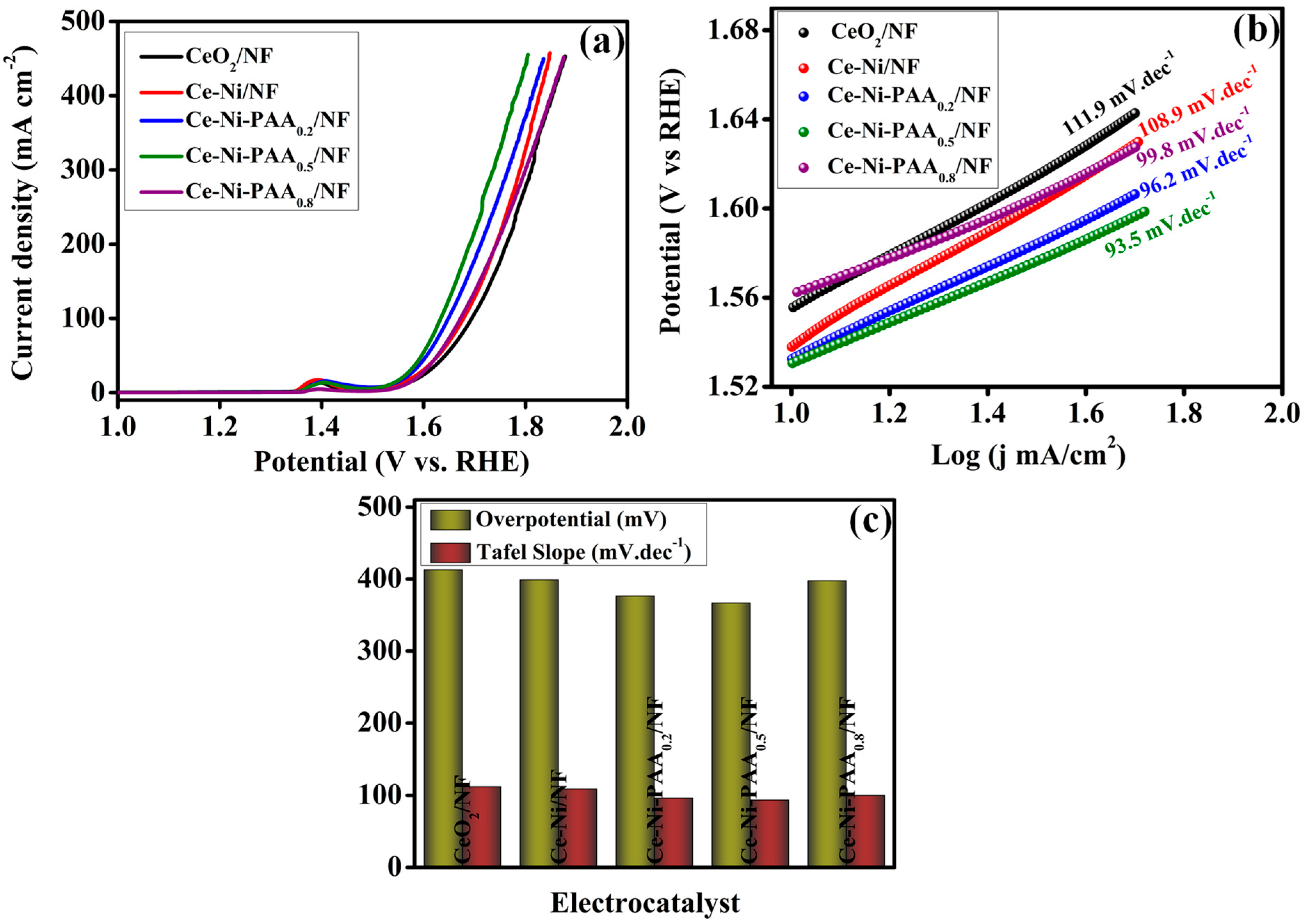 Electropolymerized PAA as a Functional Matrix for CeO2-NiO Hybrid Electrocatalysts for Efficient Water Oxidation