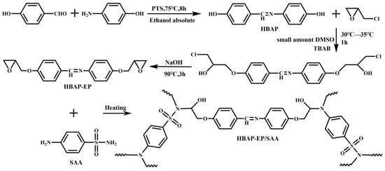 p-Hydroxybenzaldehyde, p-aminophenol, p-toluenesulfonic acid, anhydrous ethanol, epichlorohydrin (ECH), tetrabutylammonium bromide (TBAB), sodium hydroxide (NaOH), p-aminobenzenesulfonamide (SAA), 1,4-dioxane, potassium hydrogen phthalate, cresol red, and phenolphthalein were all sourced from Shanghai Maclin Biochemical Technology Co., Ltd. in Shanghai, China. Concentrated hydrochloric acid was obtained from Huzhou Shuanglin Chemical Technology Co., Ltd. in Huzhou, China. Deionized water was prepared in our laboratory.