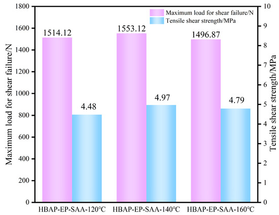 Bar chart of tensile shear strength of HBAP-EP-SAA resin.