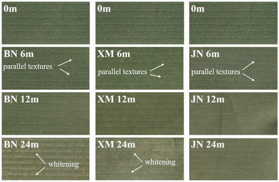 In BN, fabric exhibited minimal changes during the initial stage. However, synergistic effects of high temperature and intense irradiation caused pronounced coating deterioration after 6 months, indicating the most severe aging among all sites. In XM, under high-humidity and high-salinity fog conditions, fabrics demonstrated the most significant initial changes. Subsequent aging stages remained relatively uniform. In JN, characterized by comparatively lower temperatures, weaker irradiation, and less precipitation, fabrics exhibited the mildest aging-induced alterations. Post-aging coatings retained greater integrity and smoothness.