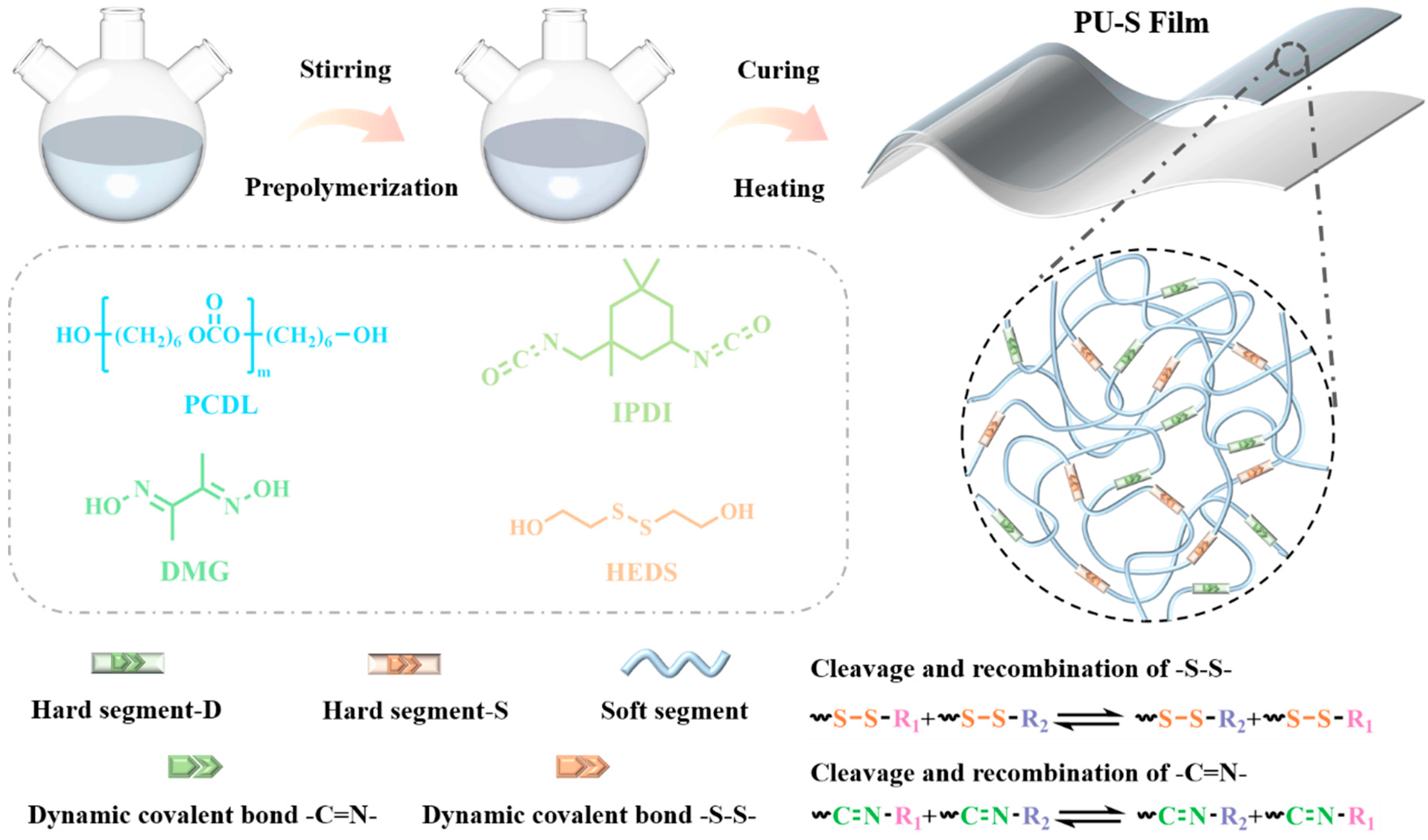 - Liu, X.; Wu, J.; Wu, J.; Huang, Z.; Shen, W.; Yin, X.; Sun, Y.; Lin, X.; Lin, W.; Yi, G. Tough, self-healing, and recyclable cross-linked polyurethane elastomers via synergistic effect of dual dynamic covalent bonds. J. Appl. Polym. Sci. 2024, 141, 54876–54891. [Google Scholar] [CrossRef]