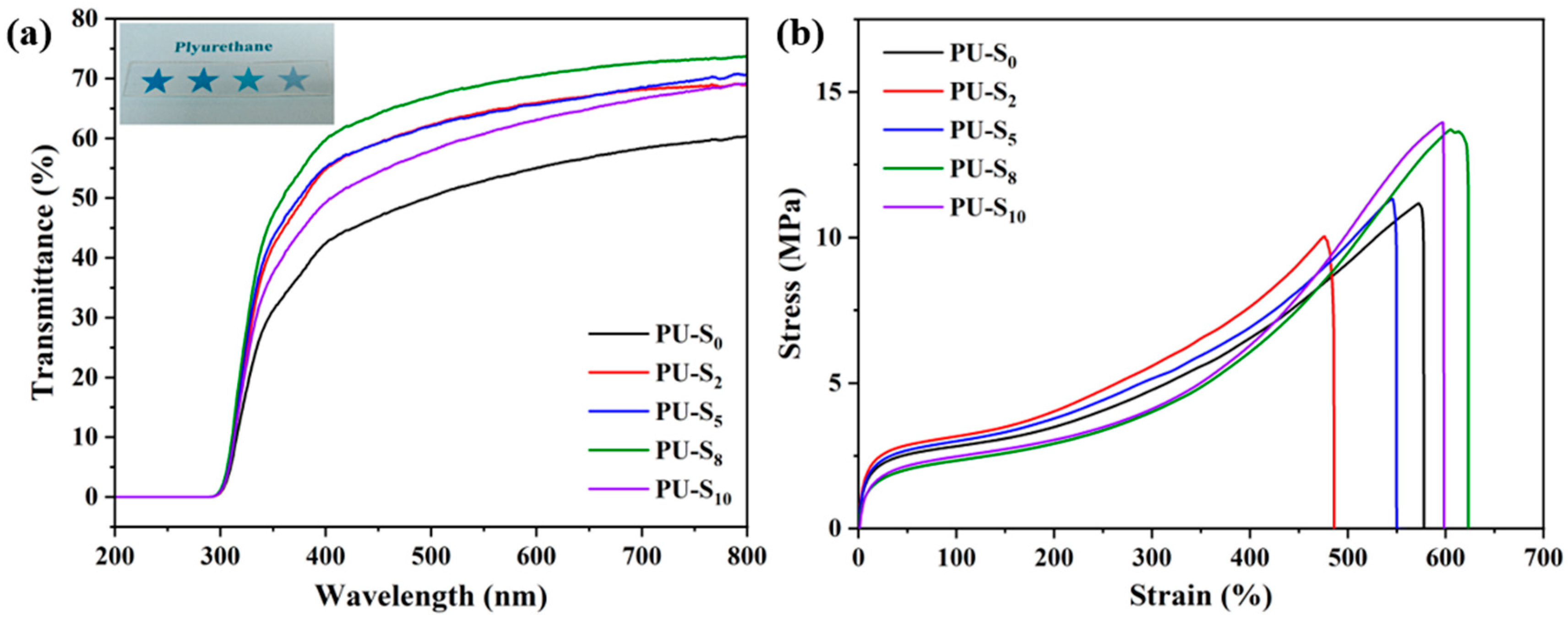 3.2. Optical and Mechanical Properties of Synthesized PU Films