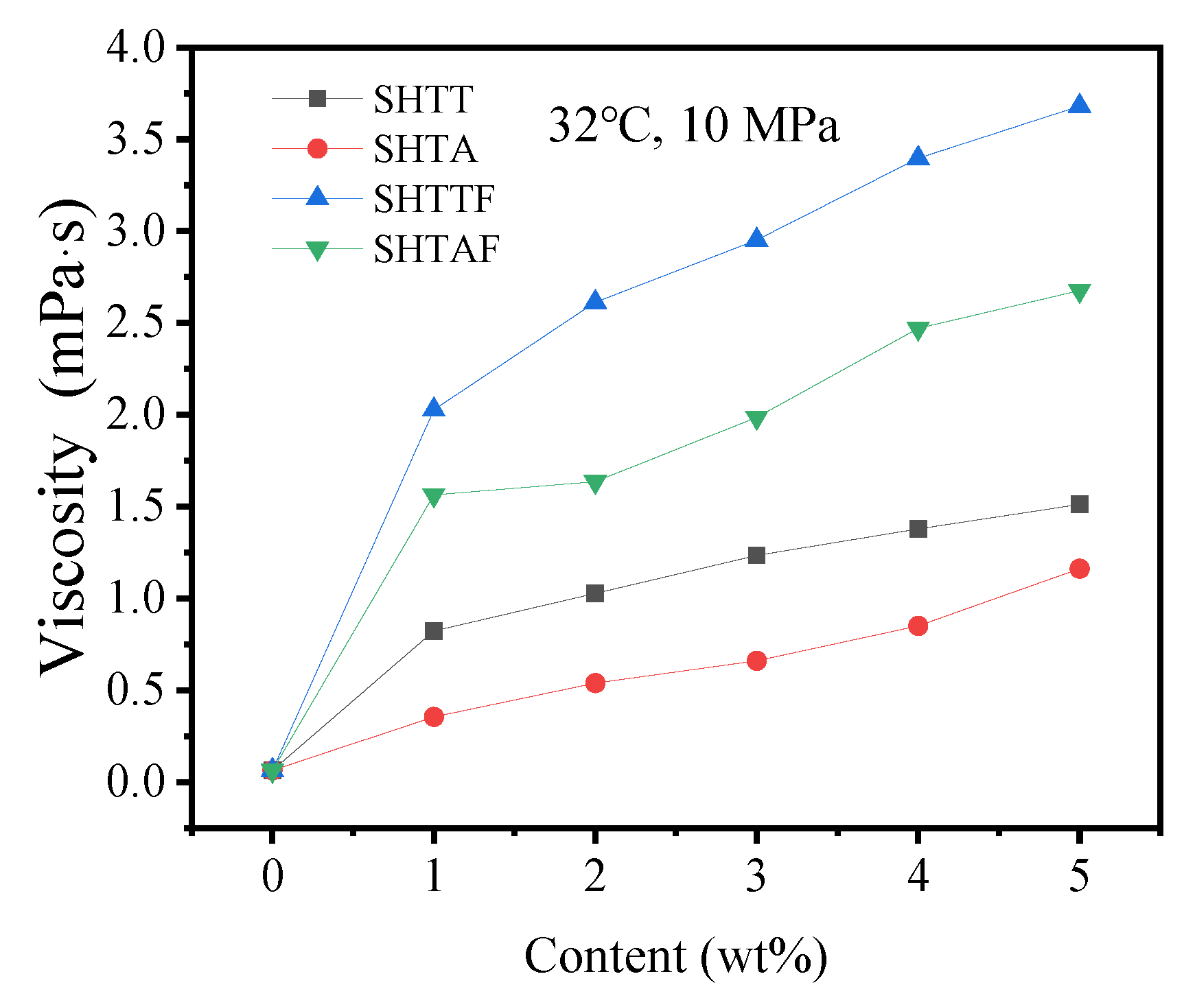 - Li, N.; Zhang, H.; Ren, X.; Wang, J.; Yu, J.; Jiang, C.; Zhang, H.; Li, Y. Development status of supercritical carbon dioxide thickeners in oil and gas production: A review and prospects. Gas Sci. Eng. 2024, 125, 205312. [Google Scholar] [CrossRef]