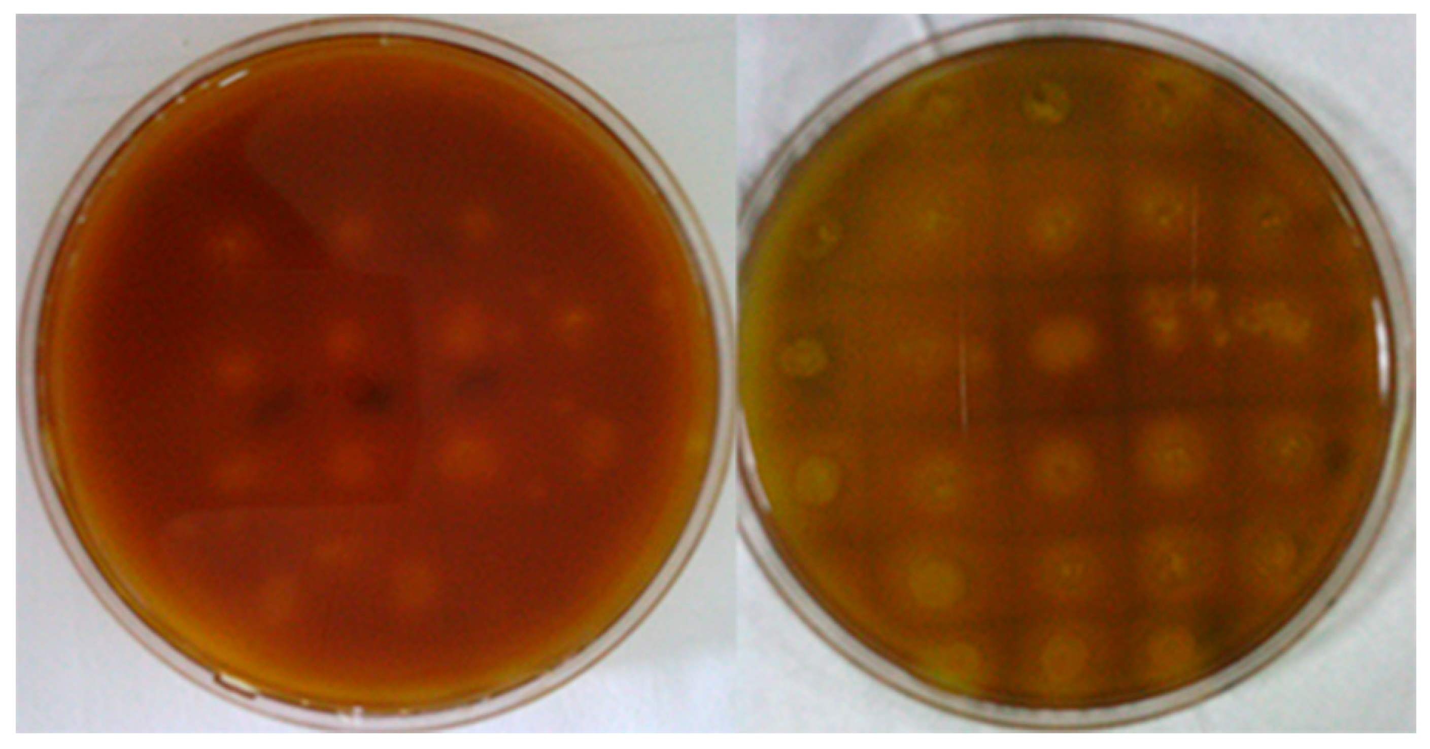 - Kim, D.S.; Jeong, G.R.; Bae, C.H.; Yeo, J.-H.; Chi, W.-J. Identification and Characterization of an Agarase- and Xylanse-producing Catenovulum jejuensis A28-5 fron Coastal Seawater of Jeju Island, Korea. Microbiol. Biotechnol. Lett. 2017, 45, 168–177. [Google Scholar] [CrossRef]