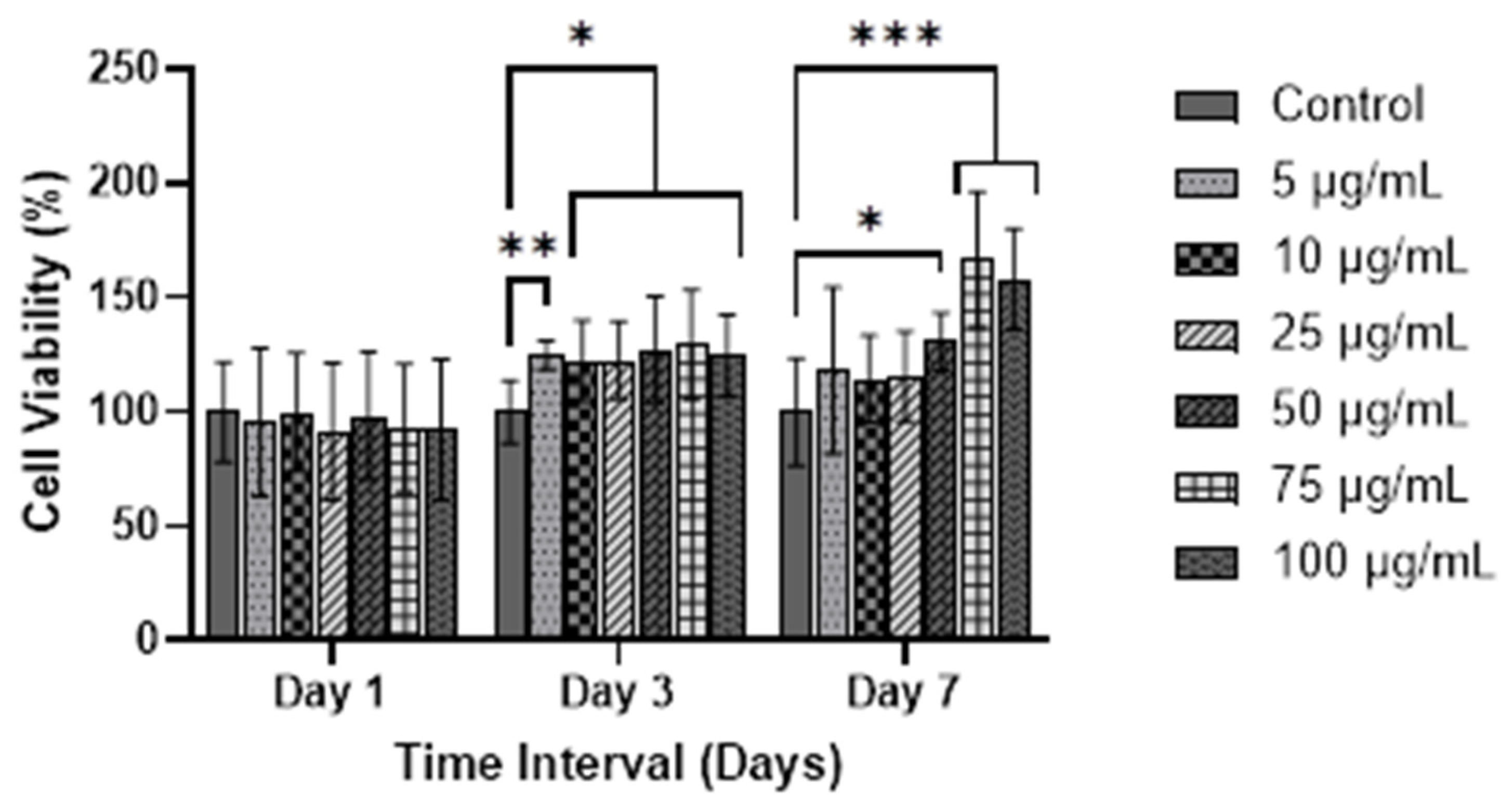 2.4.2. VFFs Proliferation Assay via MTT Assay