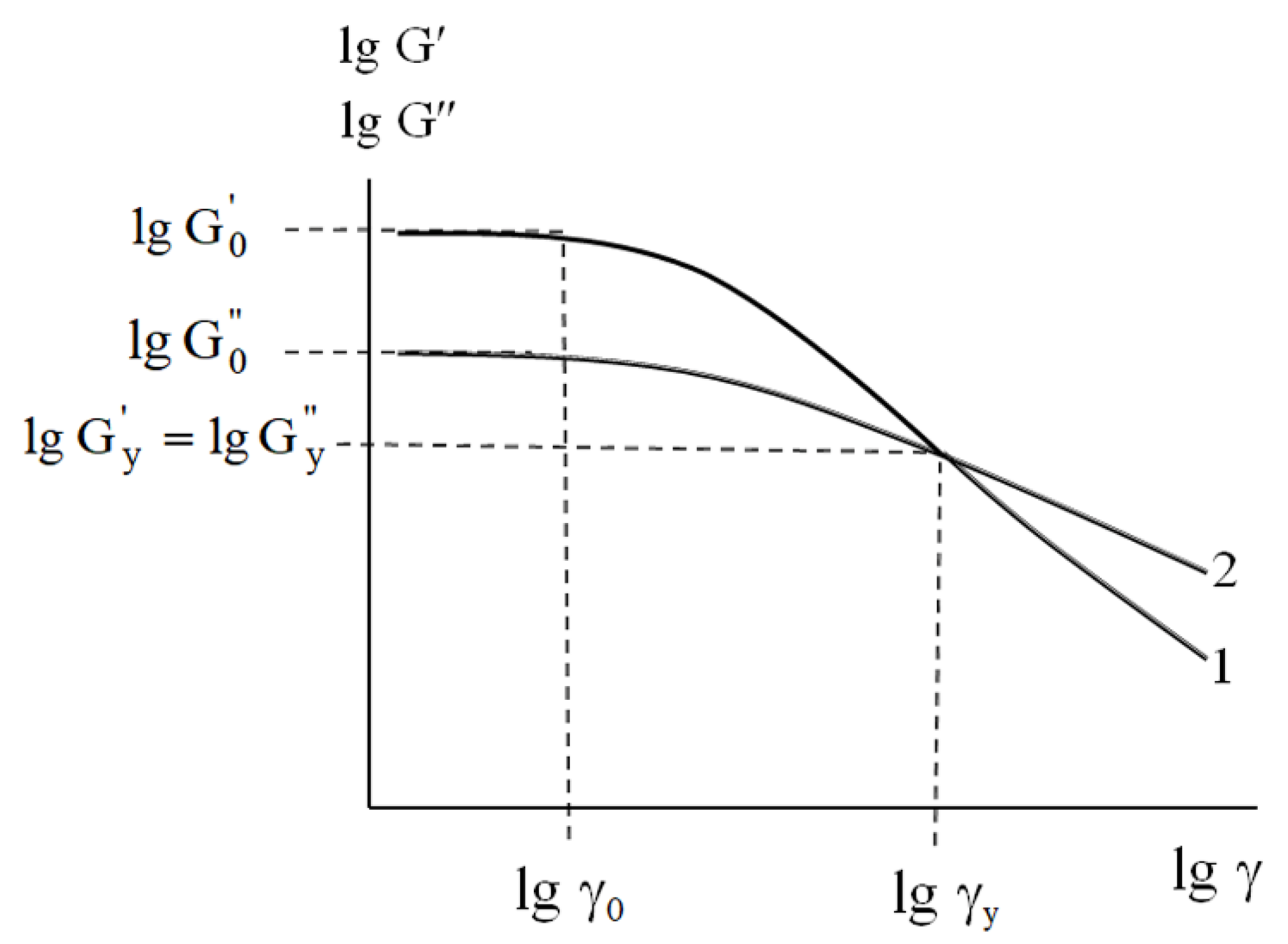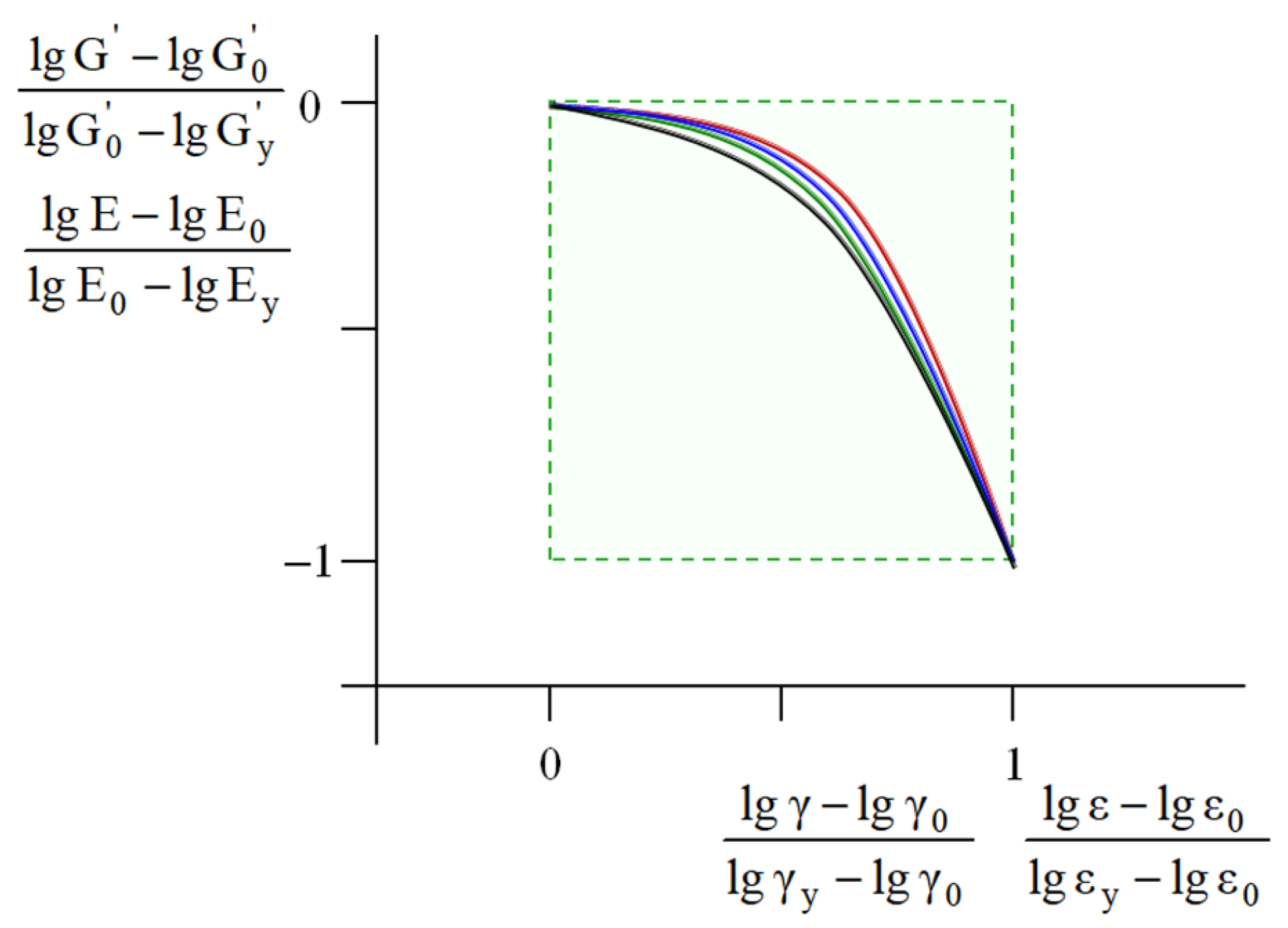 Hence, experimental measurement of the value provides an estimation of the , , and values without direct experimental testing. Note that the value of is considered to represent the upper strain limit of viscoelasticity. The values of and correspond to yielding—that is, the upper limit of the material’s operation.