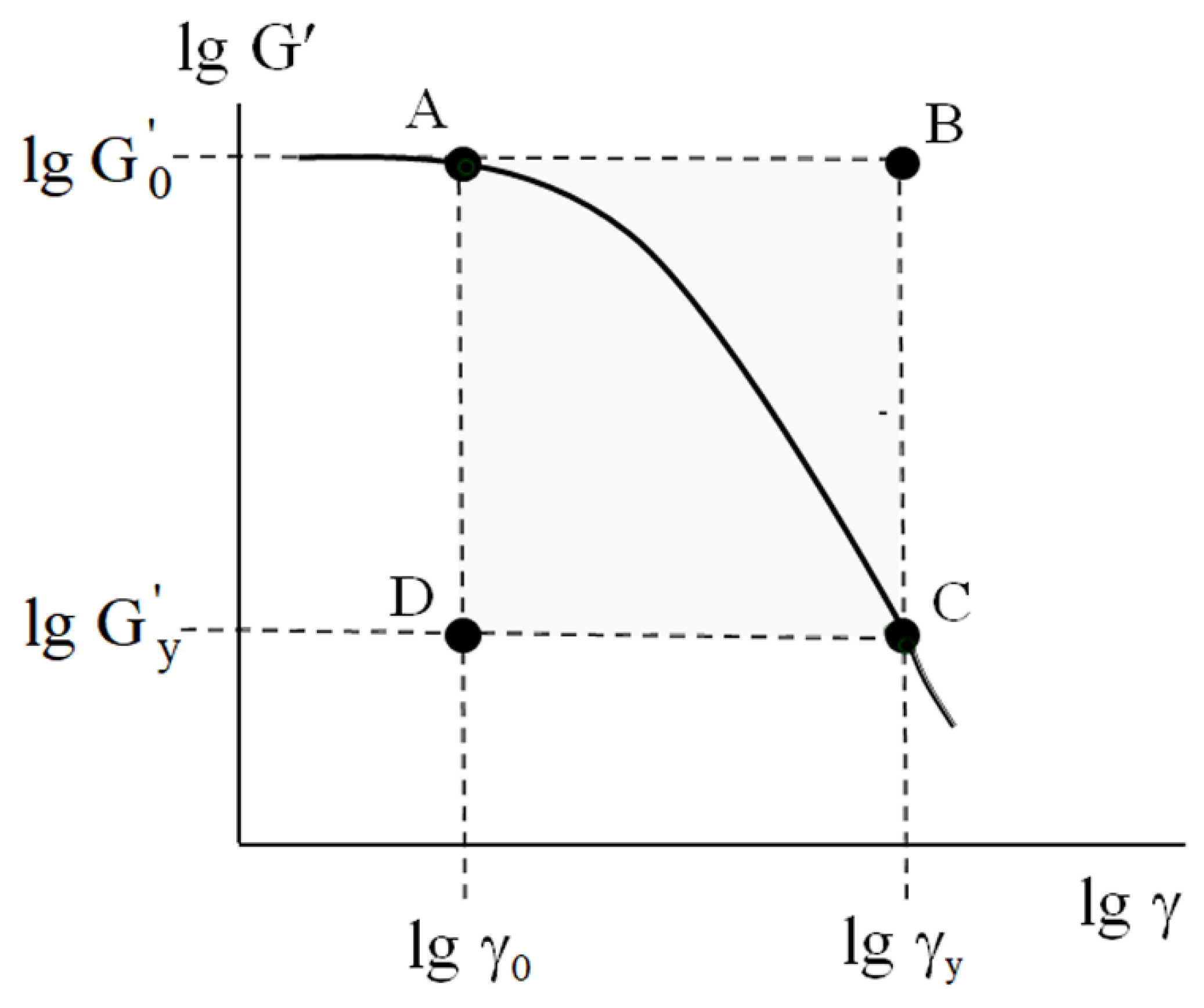 Figure 8). Note that point A restricts the interval of linear viscoelasticity and point C corresponds to the yield point.