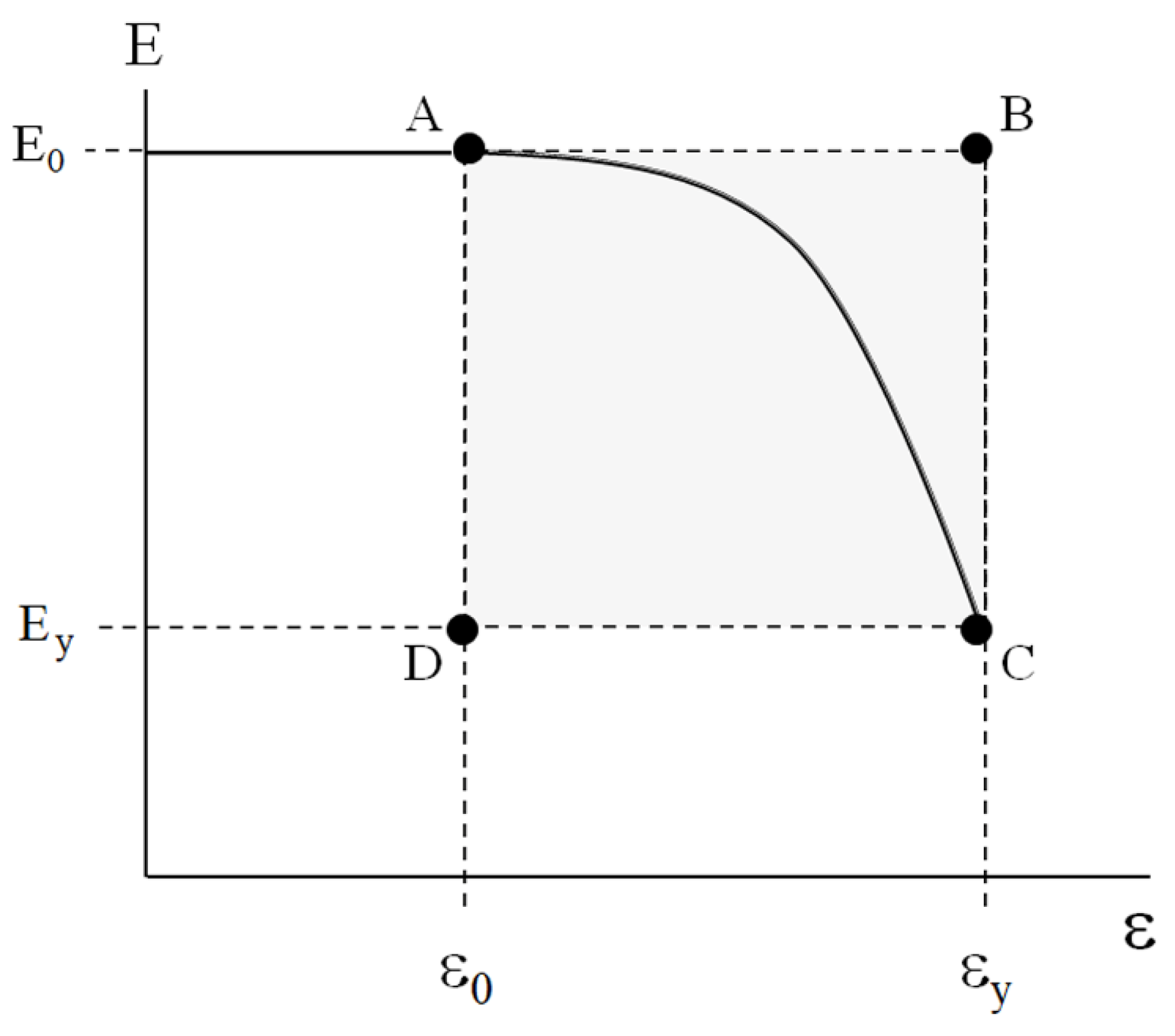 ε0, and the yield point, with the coordinates