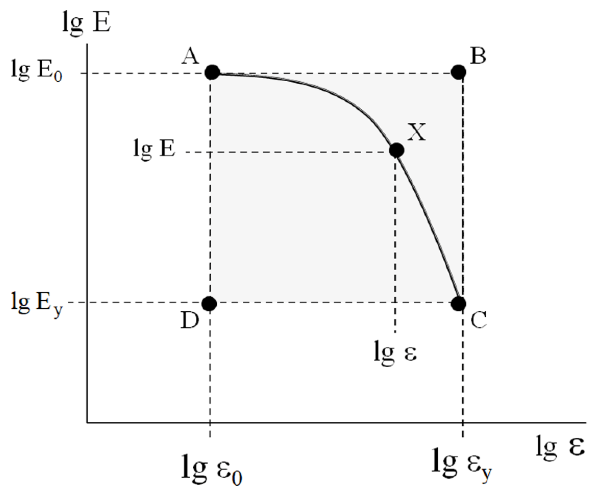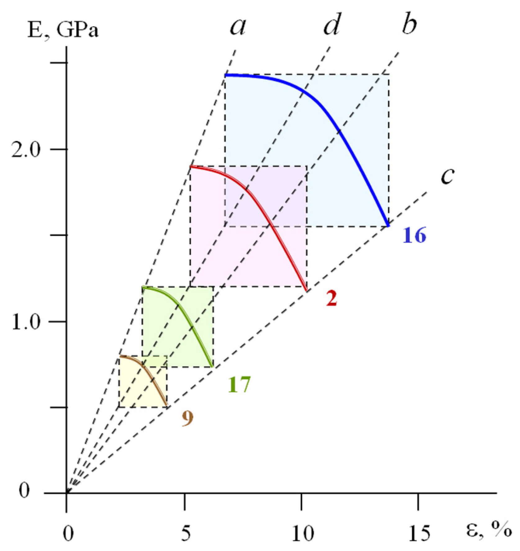 Figure 6). Their dimensions are controlled by a change in the chemical nature and composition of the materials, as well as the time–temperature regime of their deformation. Obviously, these geometrically similar rectangles within a portion of the deformation curves can be transformed into each other as follows.