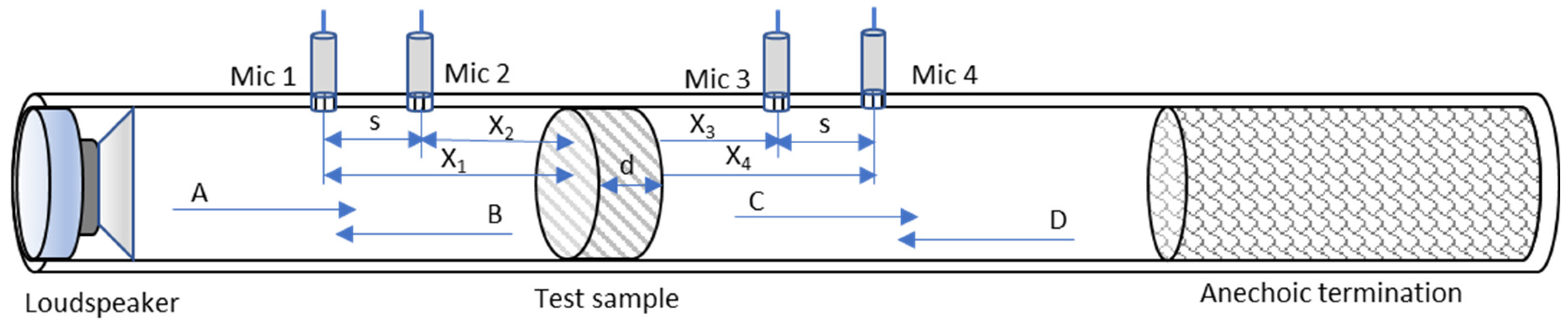 - ASTM E2611-19; Standard Test Method for Measurements of Normal Incidence Sound Transmission of Acoustical Materials Based on the Transfer Matrix Method. ASTM International: West Conshohocken, PA, USA, 2019.
