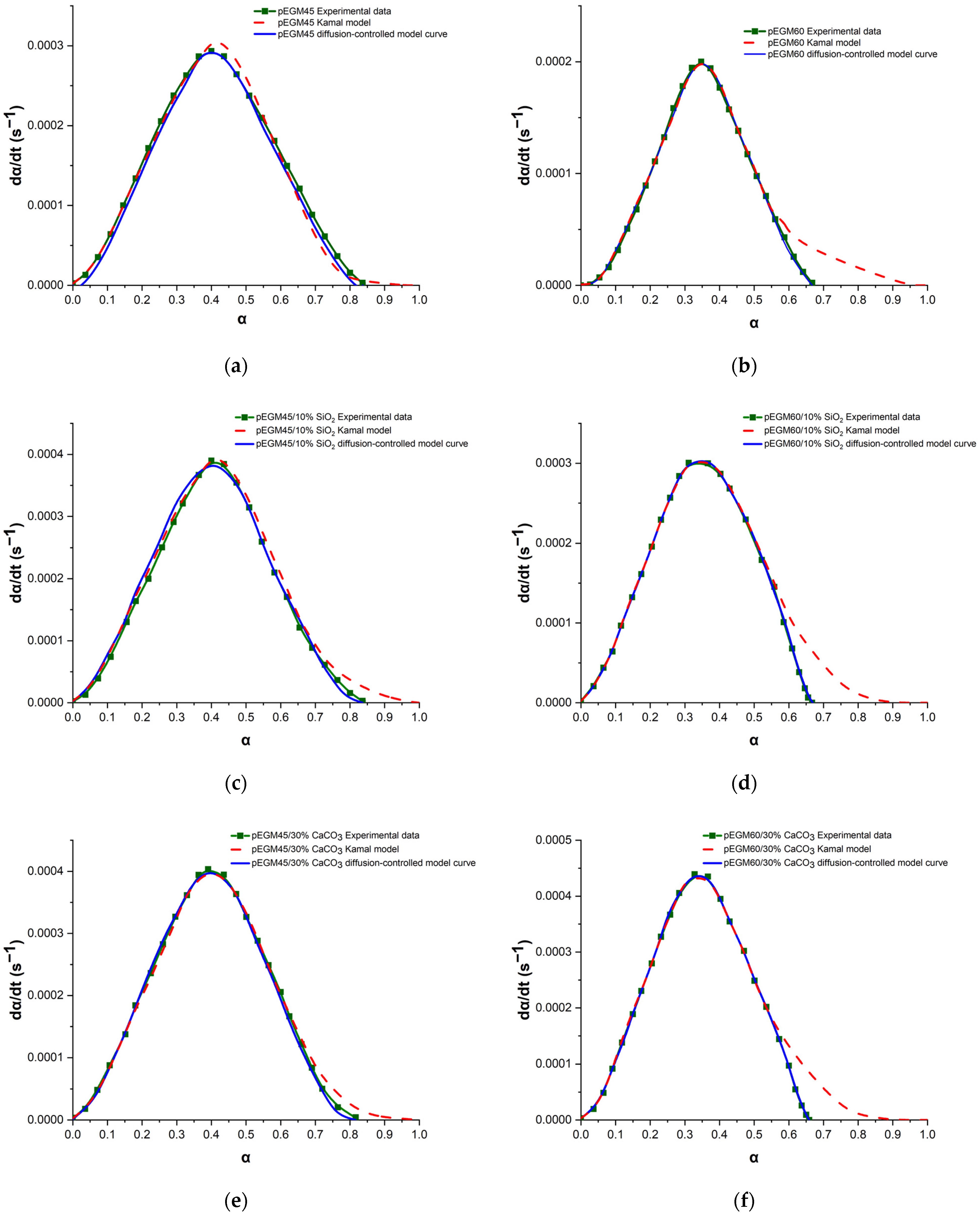 - Flammersheim, H.; Opfermann, J. Formal kinetic evaluation of reactions with partial diffusion control. Thermochim. Acta 1999, 337, 141–148. [Google Scholar] [CrossRef]