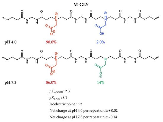 M-GLY ionic species distribution at pH 4.0 and 7.3 [40].
