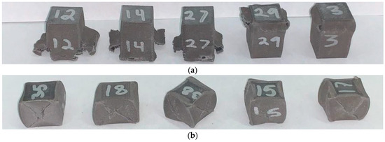 Post-test compression samples. (a) Compression batch 1; (b) compression batch 7.
