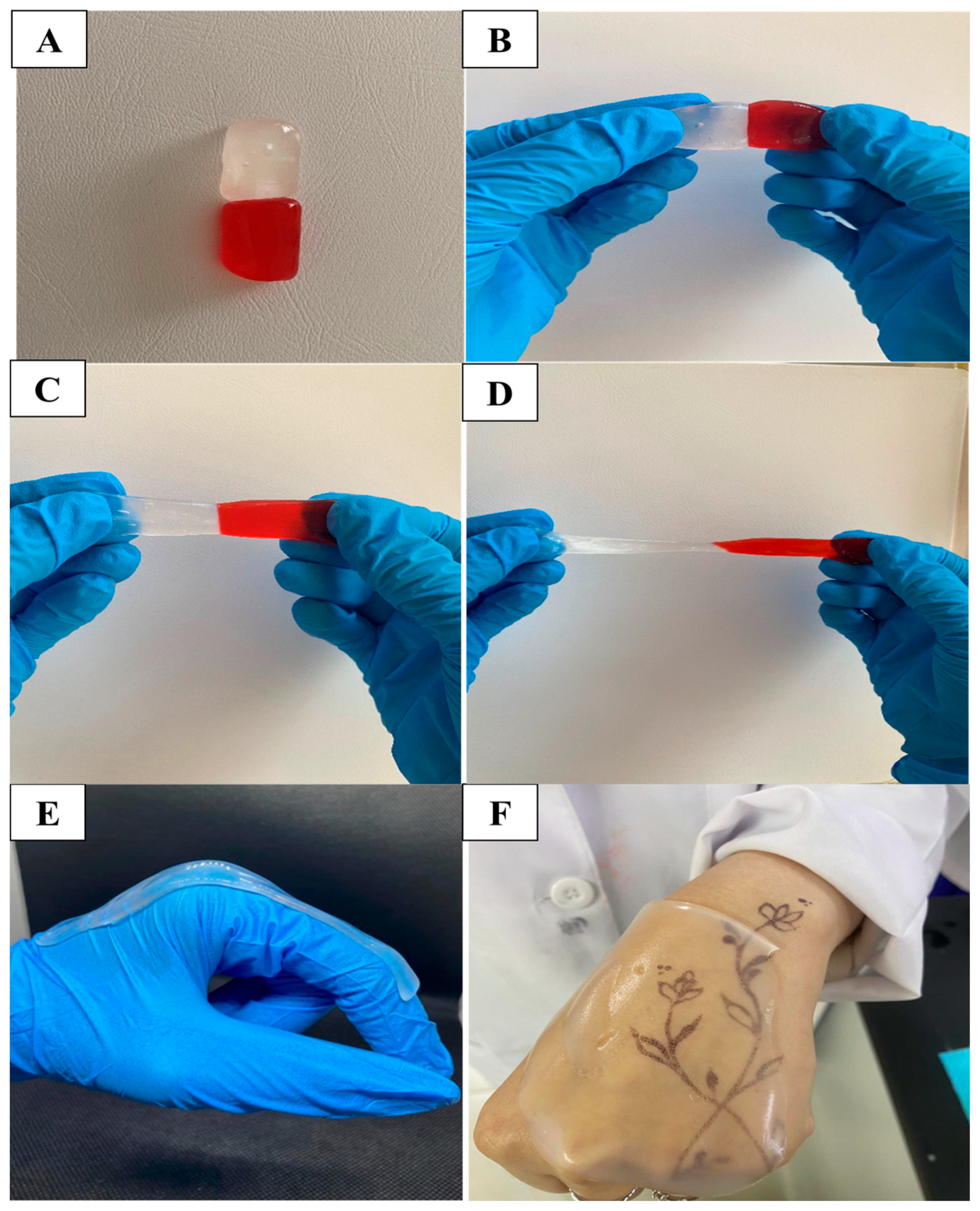 - Yu, P.; Wei, L.; Yang, Z.; Liu, X.; Ma, H.; Zhao, J.; Liu, L.; Wang, L.; Chen, R.; Cheng, Y. Hydrogel wound dressings accelerating healing process of wounds in movable parts. Int. J. Mol. Sci. 2024, 25, 6610. [Google Scholar] [CrossRef]