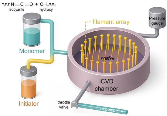- Gleason, K.K. Designing Organic and Hybrid Surfaces and Devices with Initiated Chemical Vapor Deposition (ICVD). Adv. Mater. 2024, 36, 2306665. [Google Scholar] [CrossRef]