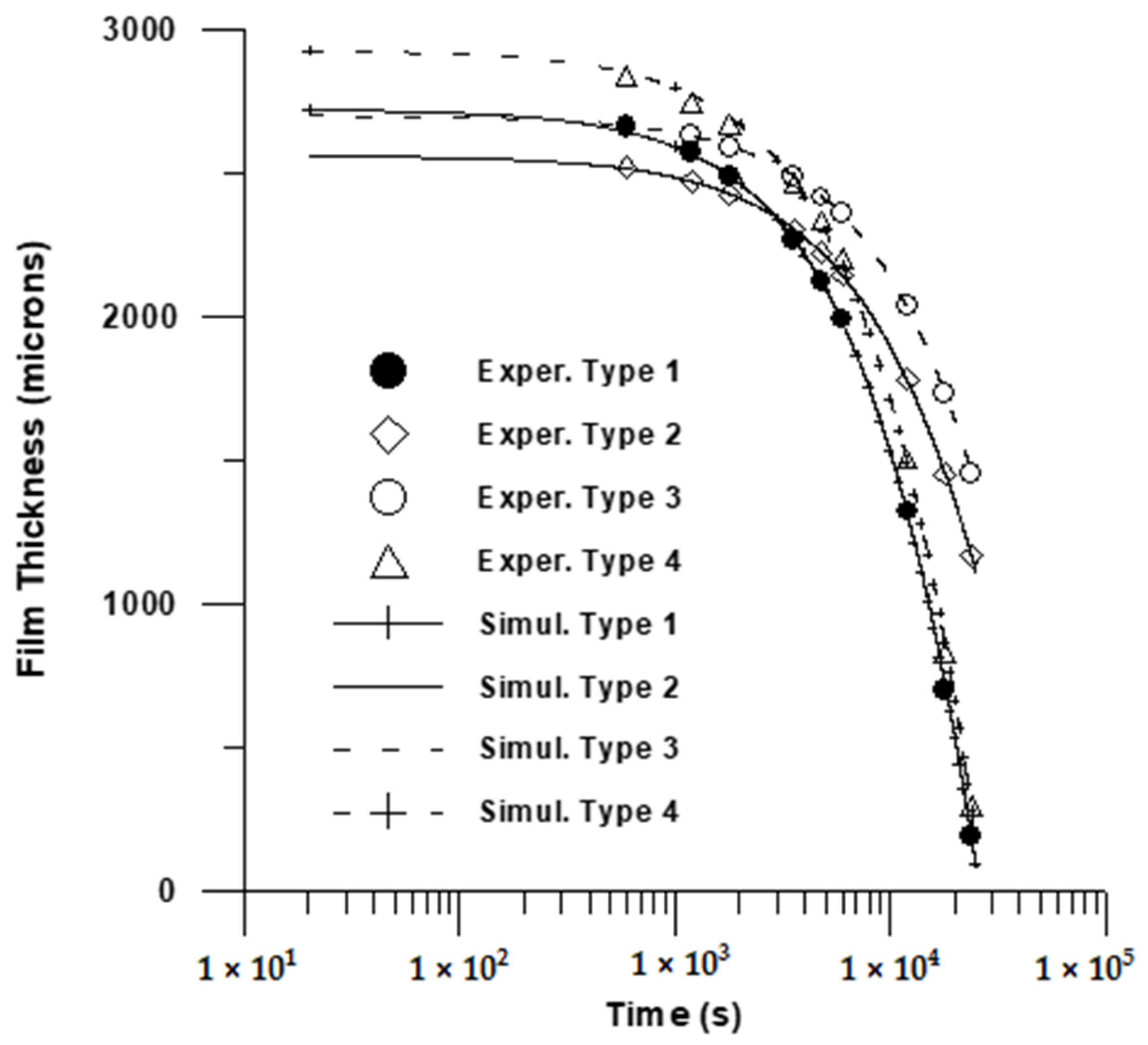 - Velaga, S.P.; Nikjoo, D.; Vuddanda, P.R. Experimental studies and modeling of the drying kinetics of multicomponent polymer films. Aaps Pharmscitech 2018, 19, 425–435. [Google Scholar] [CrossRef]