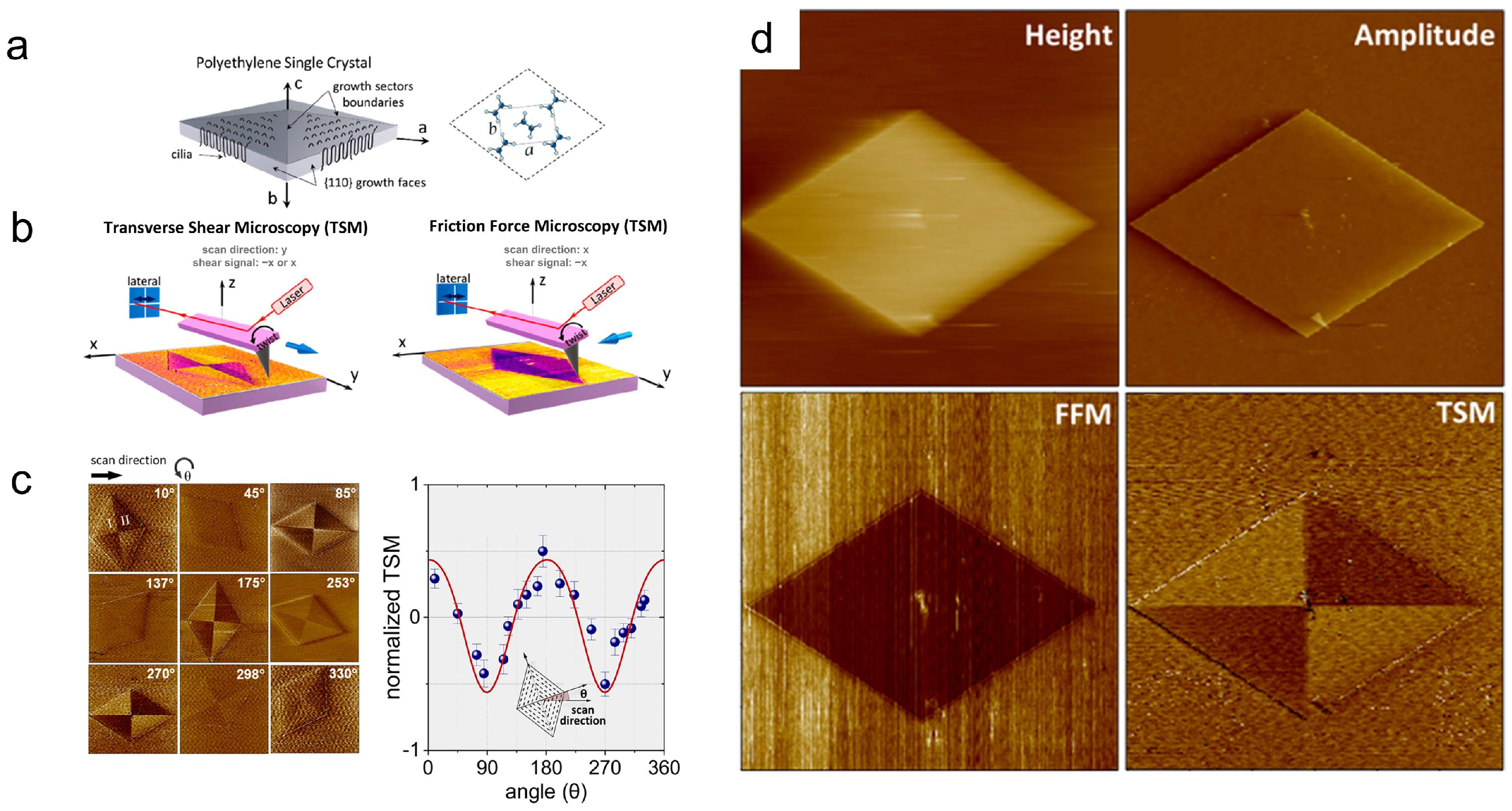 - Hamidinejad, M.; Arif, T.; Wang, G.; Rezaei, S.; Serles, P.; Taylor, H.K.; Park, C.B.; Filleter, T. Sectorization of Macromolecular Single Crystals Unveiled by Probing Shear Anisotropy. ACS Macro Lett. 2022, 11, 53–59. [Google Scholar] [CrossRef]