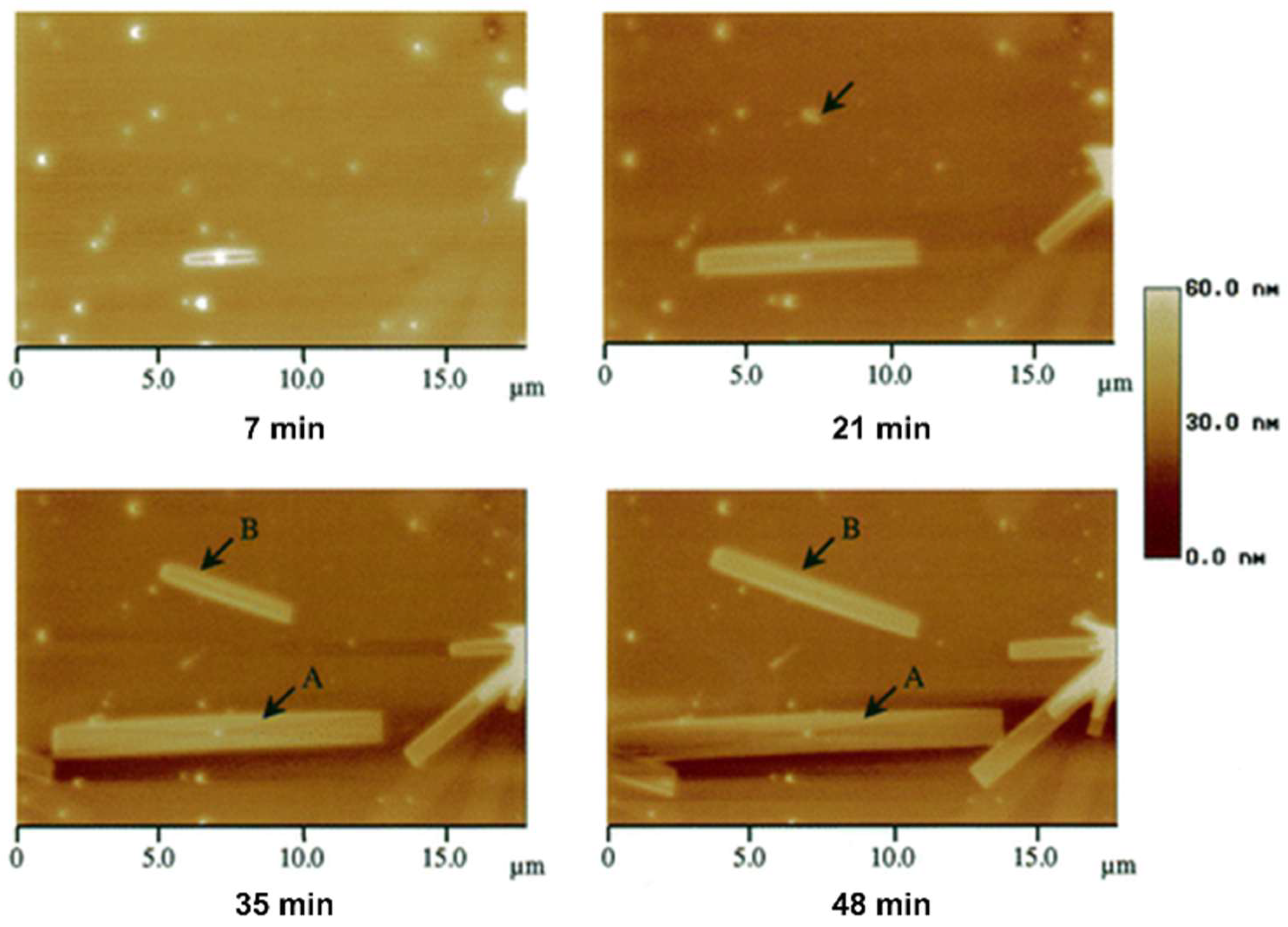 - Liu, X.; Zhang, Y.; Goswami, D.K.; Okasinski, J.S.; Salaita, K.; Sun, P.; Bedzyk, M.J.; Mirkin, C.A. The Controlled Evolution of a Polymer Single Crystal. Science 2005, 307, 1763–1766. [Google Scholar] [CrossRef]