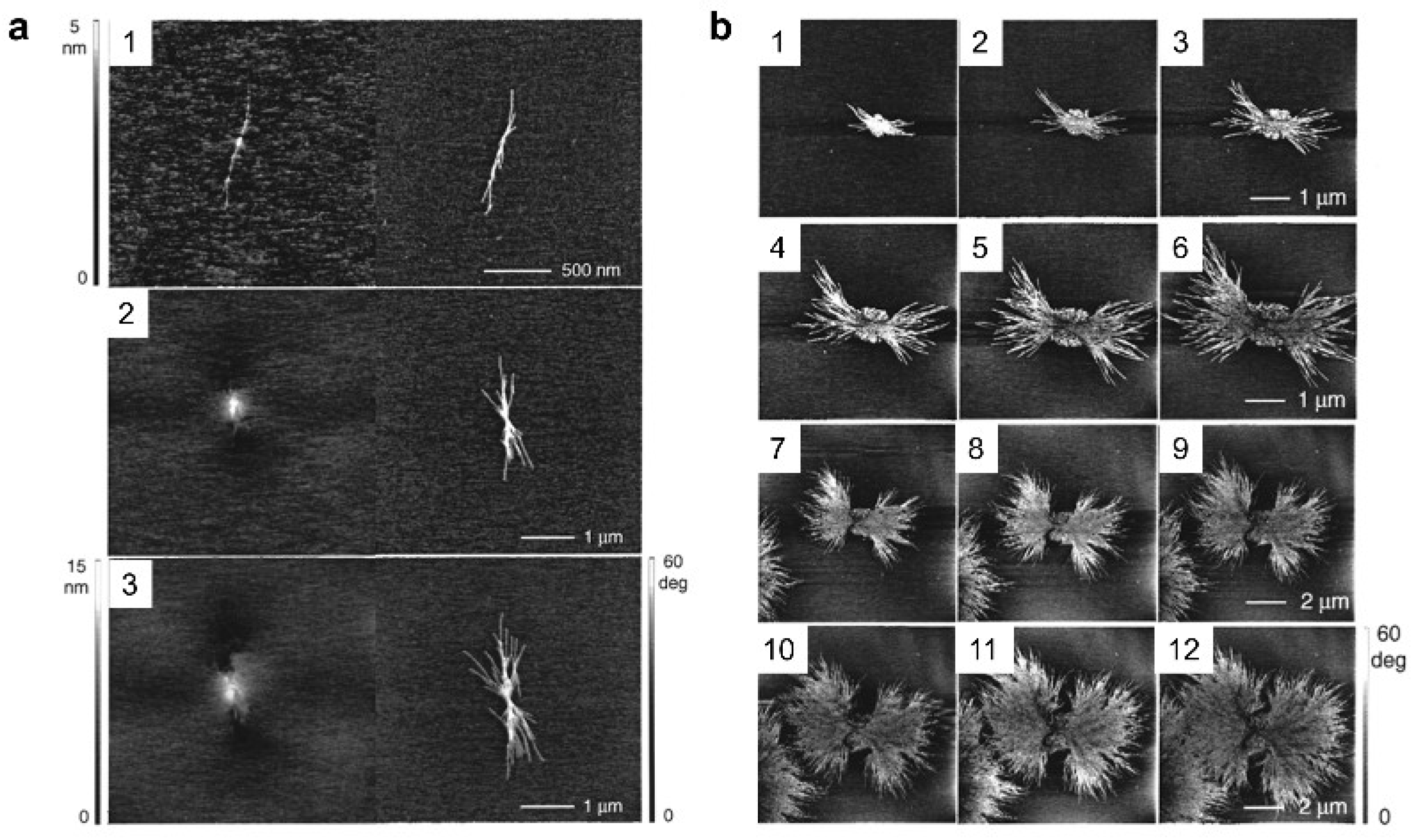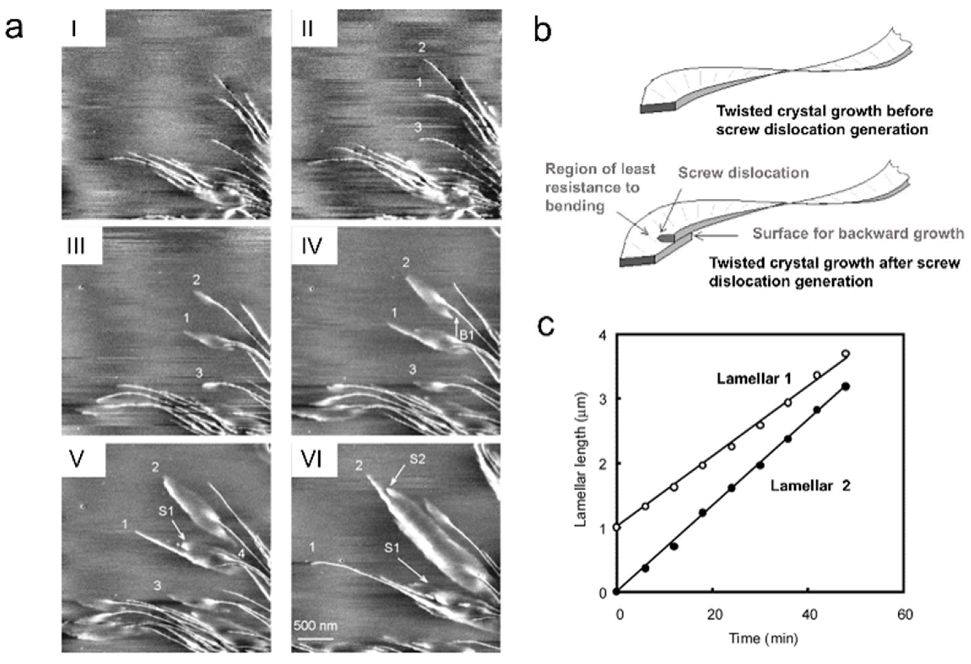 - Li, L.; Chan, C.-M.; Yeung, K.L.; Li, J.-X.; Ng, K.-M.; Lei, Y. Direct Observation of Growth of Lamellae and Spherulites of a Semicrystalline Polymer by AFM. Macromolecules 2001, 34, 316–325. [Google Scholar] [CrossRef]