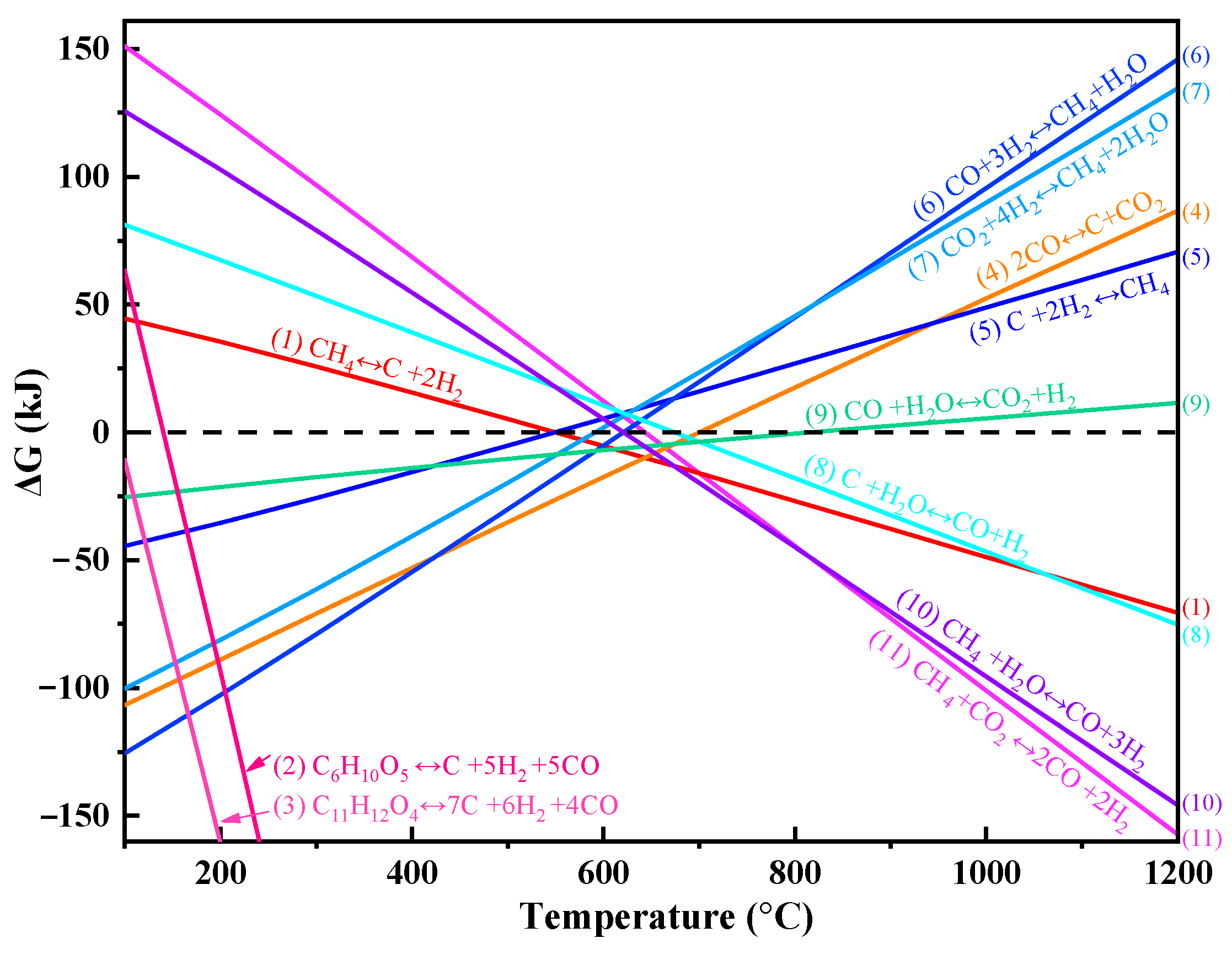 3.1. Gibbs Free Energy Variation in Key Reactions