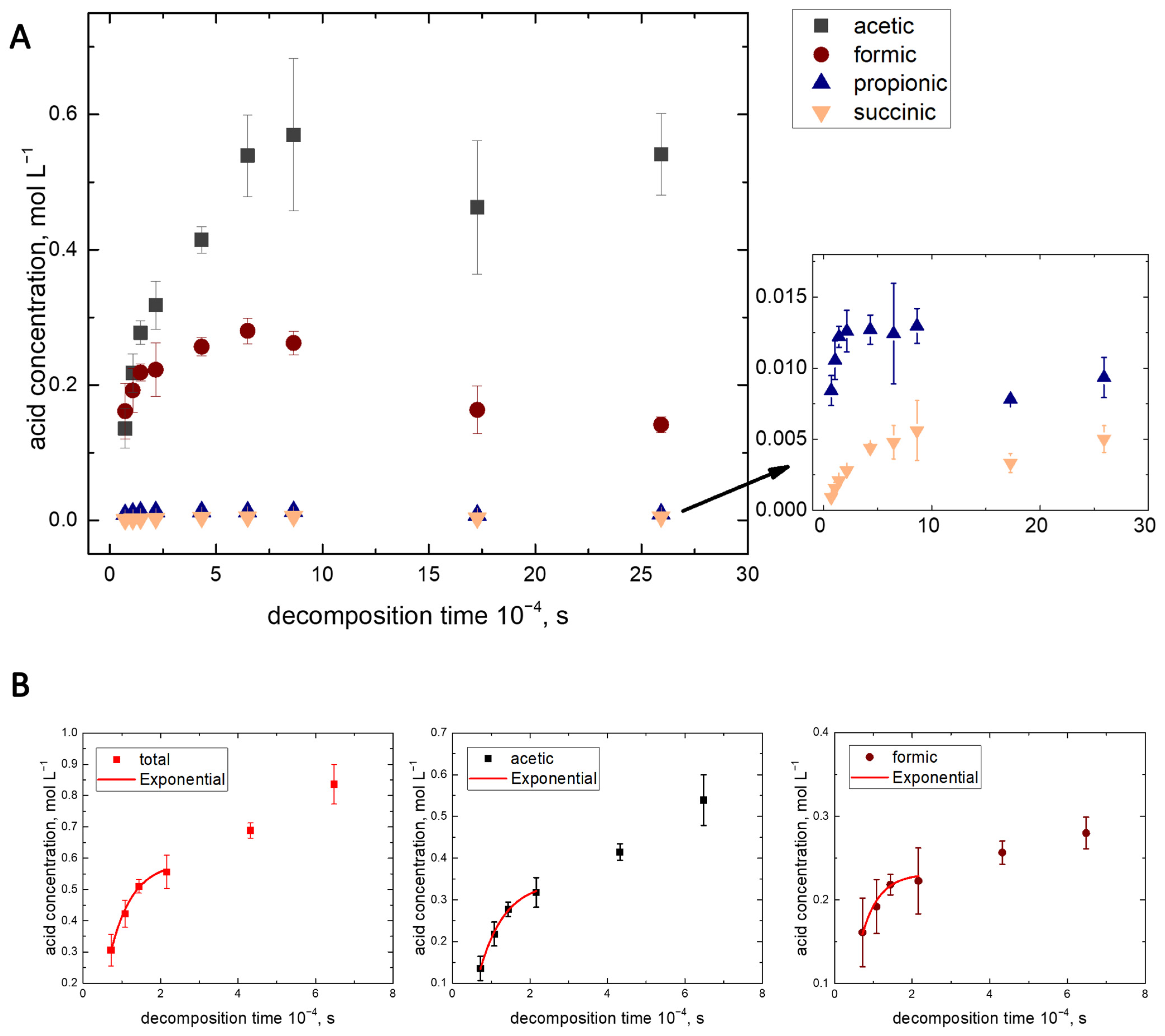 acetic + formic + propionic + succinic acids | = 1.7 ± 0.5 × 10−4 s−1; R2 = 0.97 |