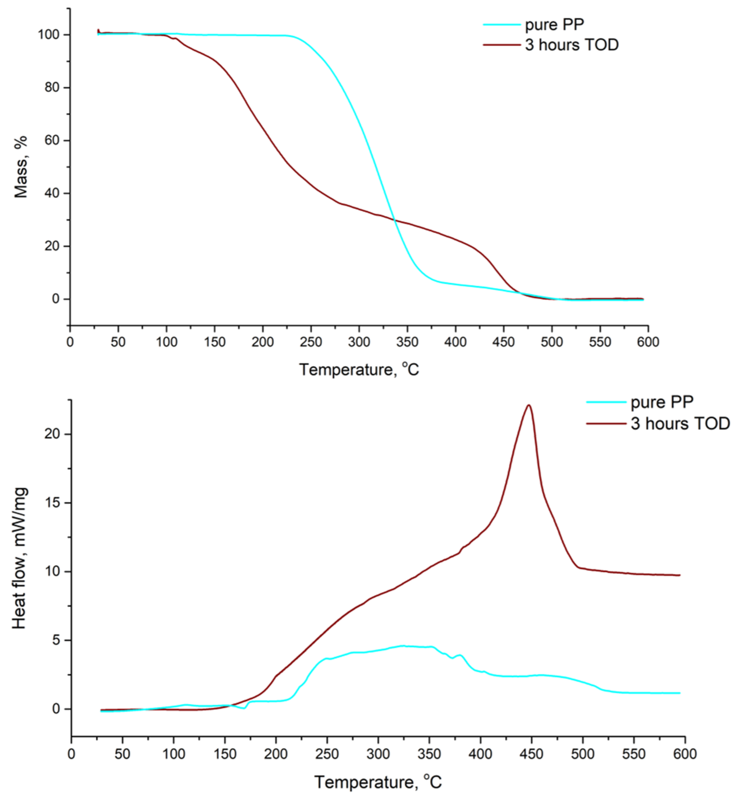 - Gugumus, F. Thermooxidative Degradation of Polyolefins in the Solid State—6. Kinetics of Thermal Oxidation of Polypropylene. Polym. Degrad. Stab. 1998, 62, 235–243. [Google Scholar] [CrossRef]