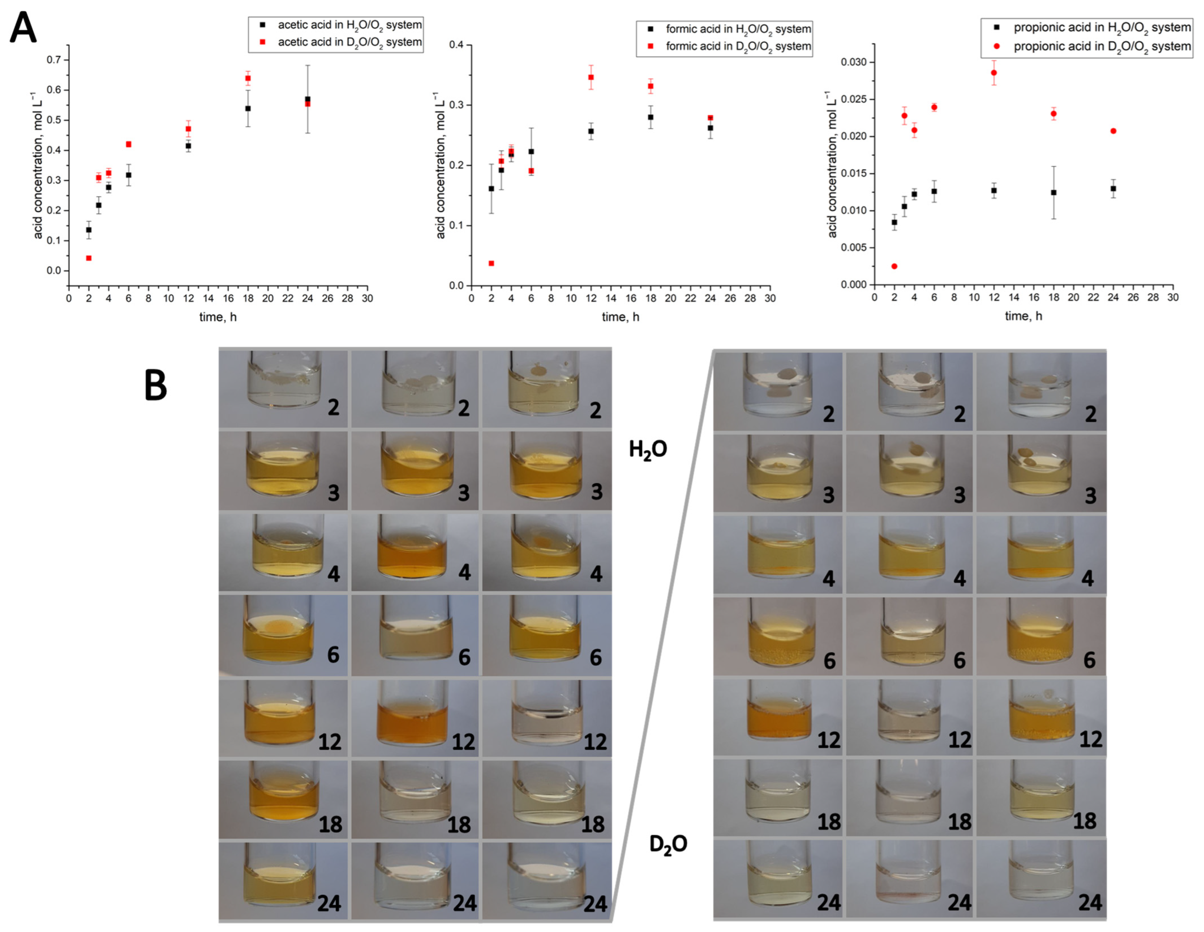3.1. Overview of the Products of the TOD Process in H2O/O2 and D2O/O2 Mixture