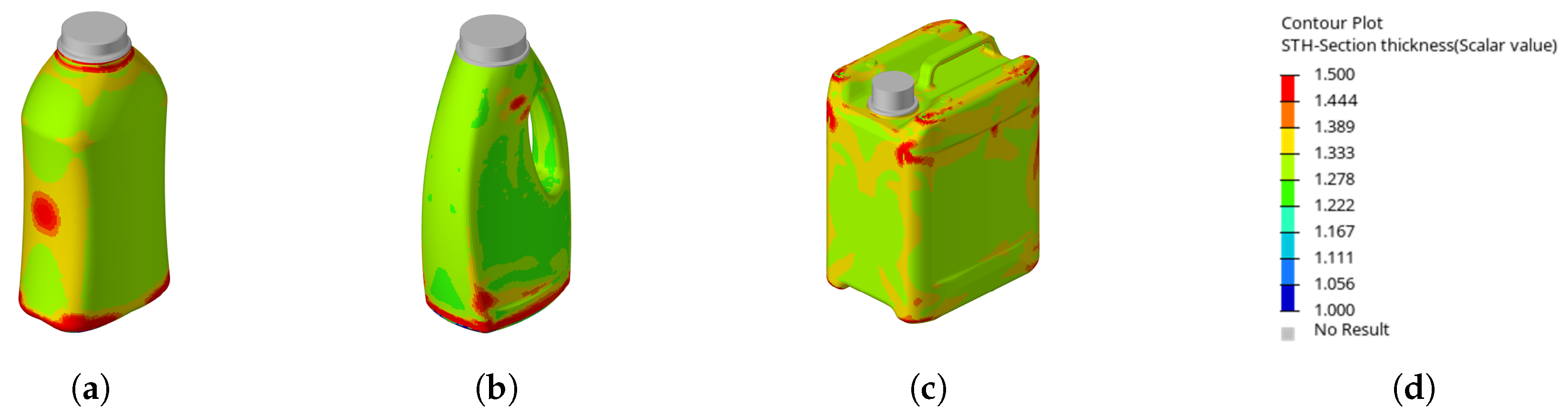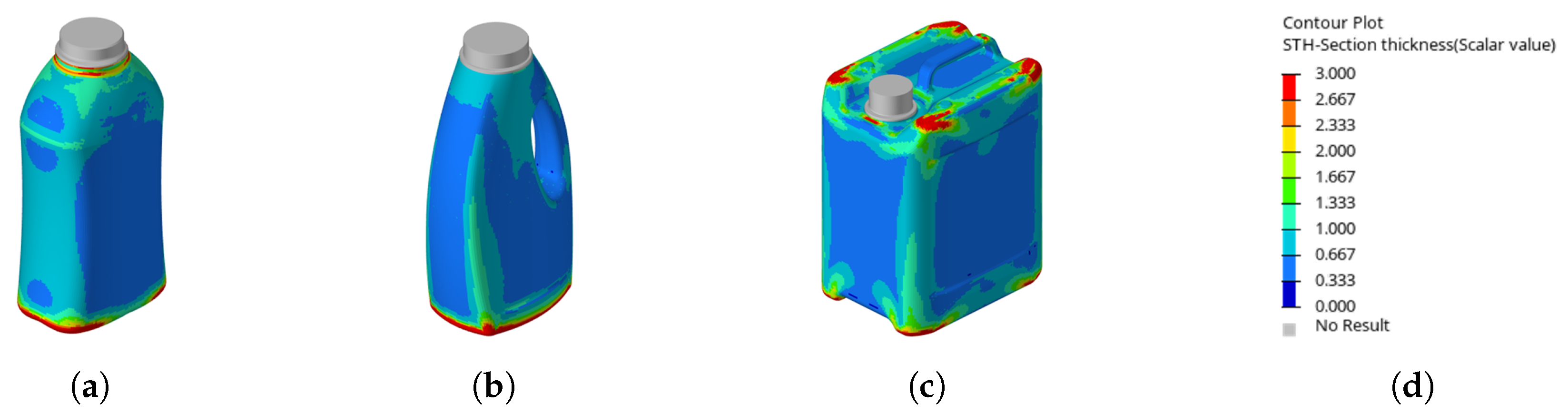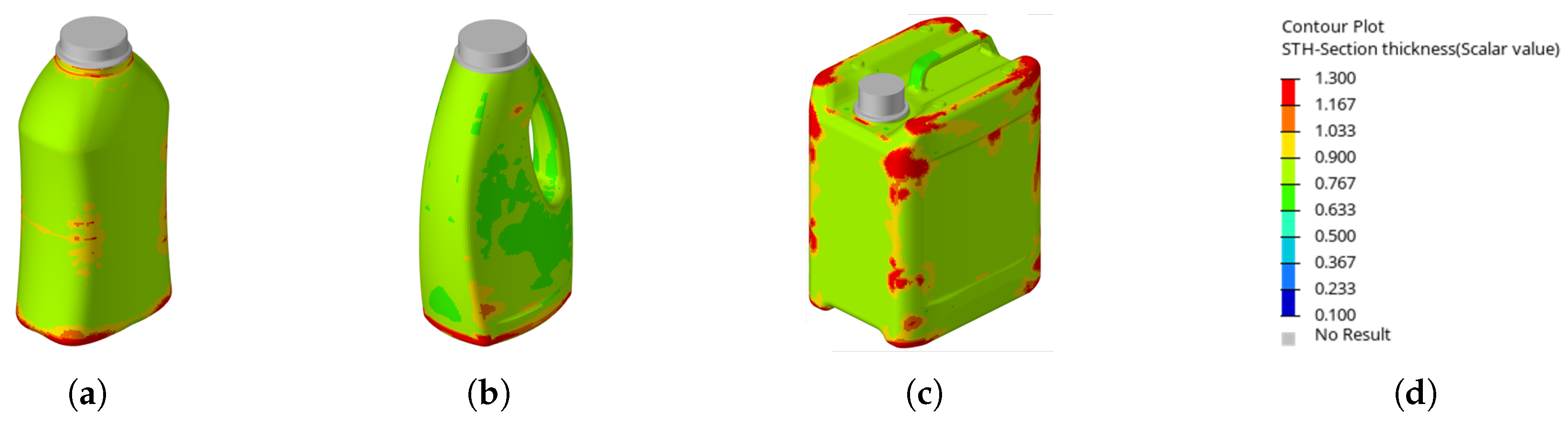 - Modławski, M.; Nabiałek, J.; Jaruga, T. Computer Simulation of the Load Test of an Extrusion Blow Moulded Product. MATEC Web Conf. 2018, 157, 01012. [Google Scholar] [CrossRef]