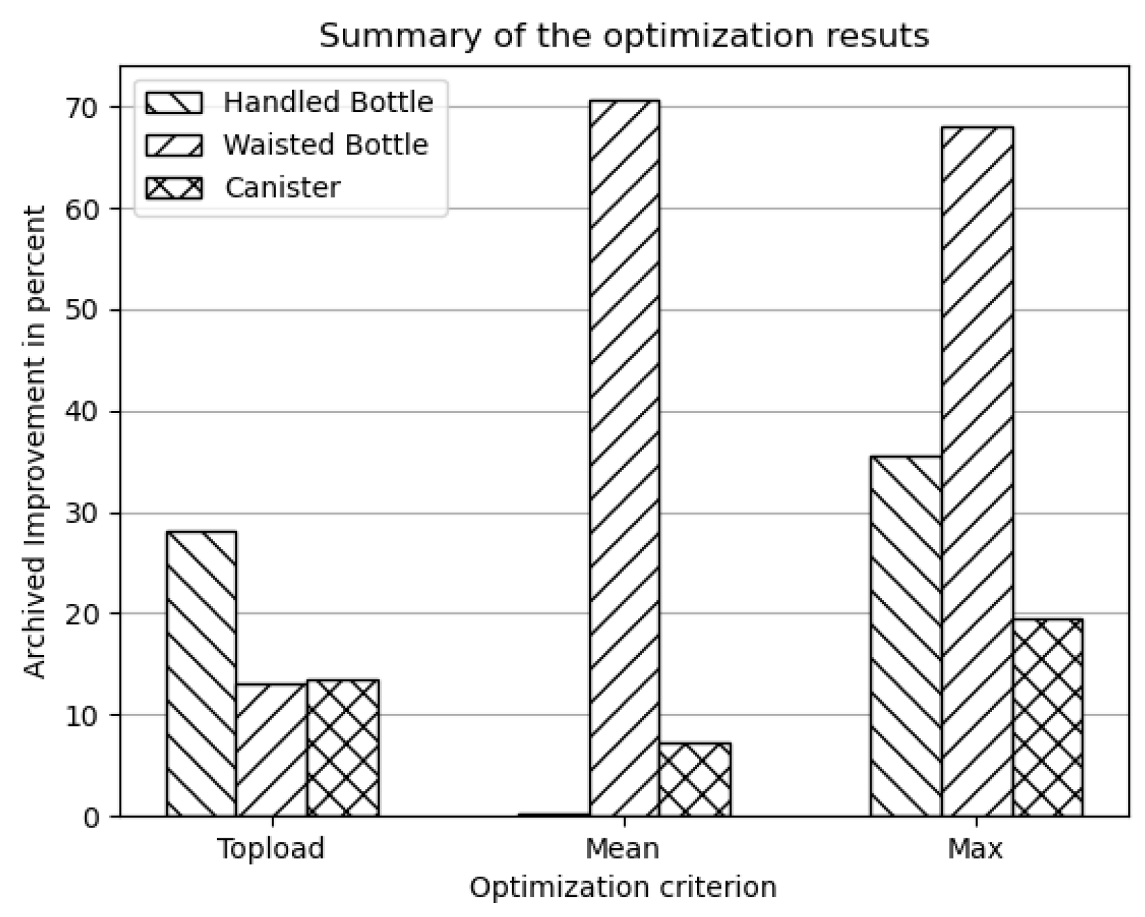 While the developed workflow is demonstrated with blow-molded packaging containers, buckling occurs in a wide range of engineering applications, including thin composite structures, wind turbine blades, and other lightweight components. The underlying principles of optimizing structural stability are therefore broadly applicable across disciplines.