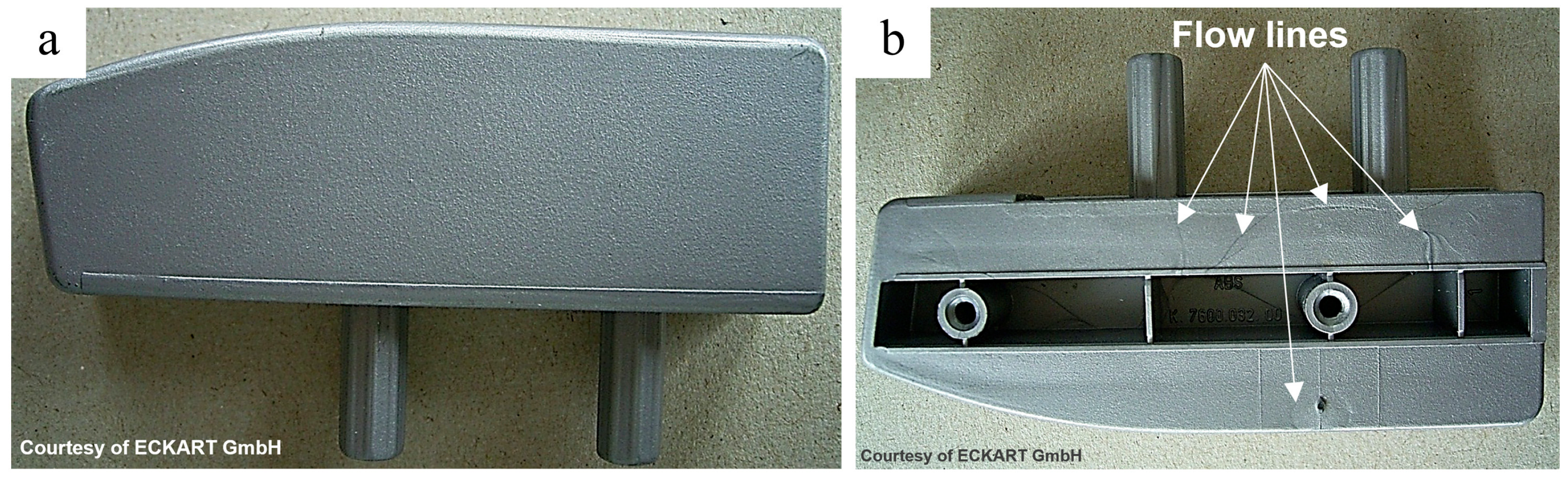 - Rawson, K.W.; Allan, P.S.; Bevis, M.J. Controlled orientation of reflective pigment and optical property characterization of injection-molded polypropylene. Polym. Eng. Sci. 1999, 39, 177–189. [Google Scholar] [CrossRef]