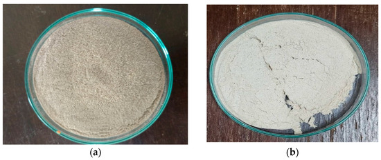 Raw materials after pretreatments; (a) WH powder, (b) CC powder.
