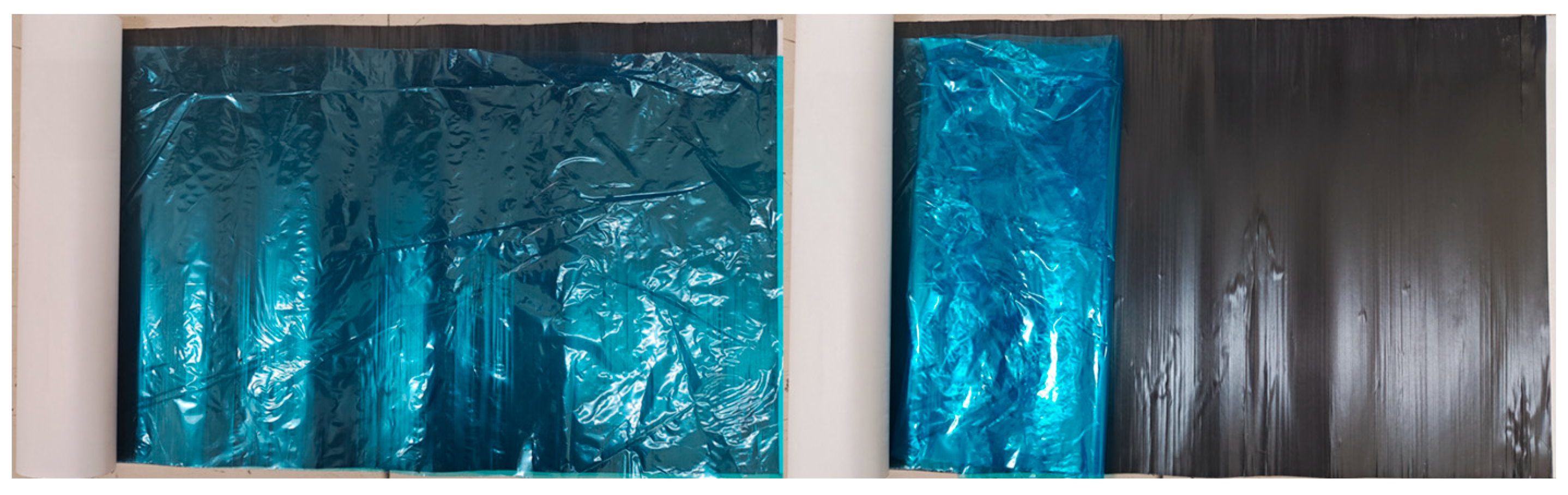 - Smoke Density Testing: In accordance with ISO 5659-2 [15], a single-chamber smoke density test was performed on the composite material to determine the specific optical density of smoke (abbreviated as smoke density). This test was performed to assess compliance with the smoke toxicity requirements of the International Maritime Organization’s FTP Code.