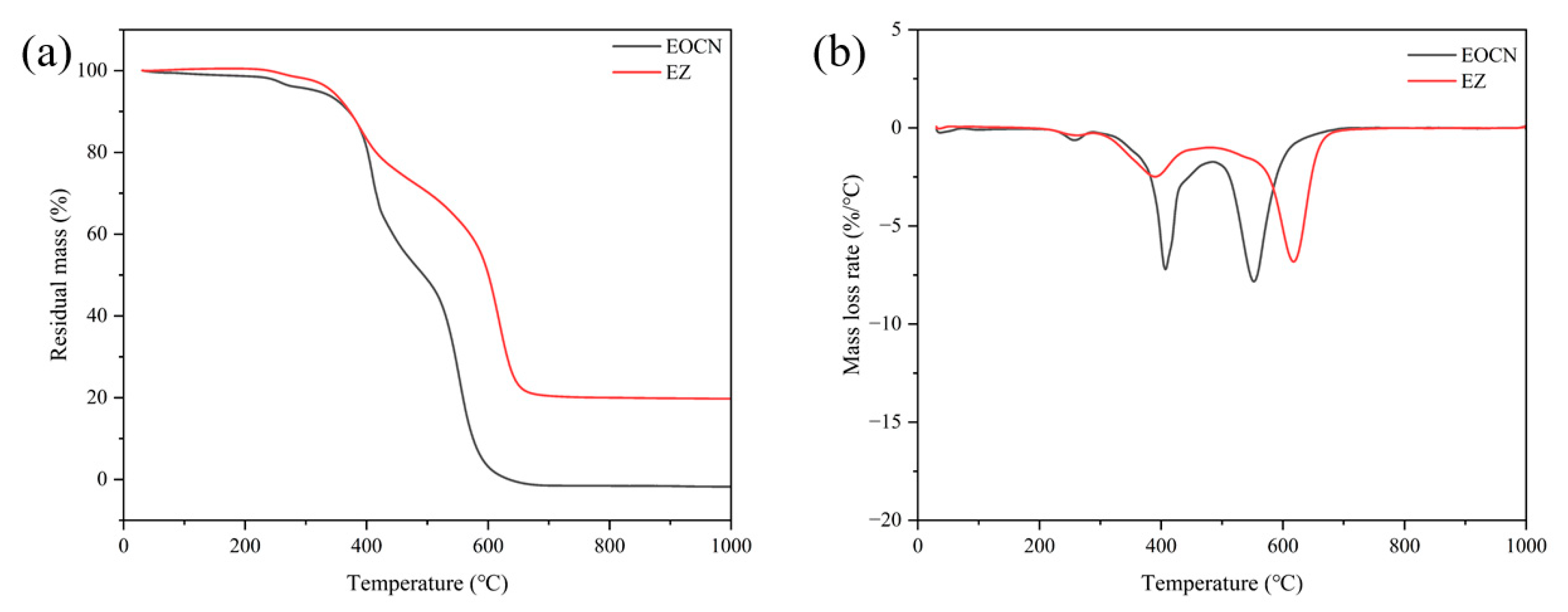 - Infrared testing: Infrared spectroscopy of EOCN, PPPS, and EZ was carried out by KBr compression method using a Nicolet 6700 FTIR spectrometer (Waltham, MA, USA) with a scanning wave number range of 4000–5000 cm−1;