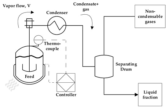Figure 11. It is possible to observe that the vapor temperature tends to maintain its value near the boiling point of the vaporized mixture of substances coming out of the heated reactor. Since most of the liquid condensate is MMA, values around 101 °C should be observed (boiling point of MMA). For the experiment in